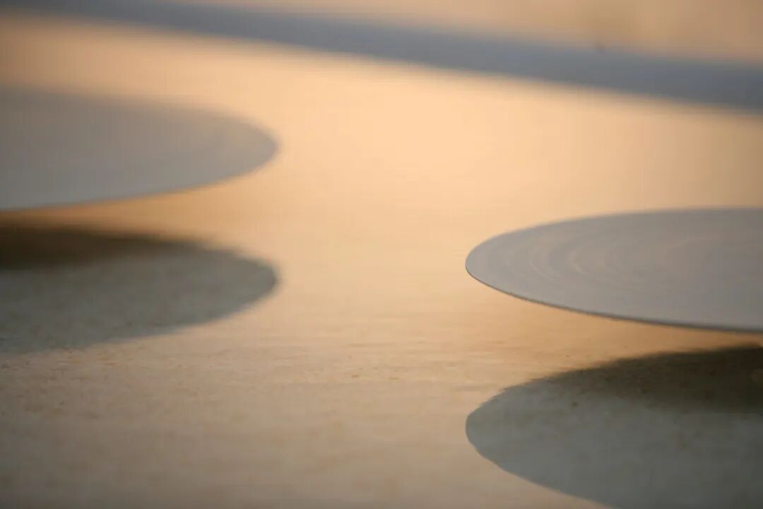 建筑内部唯一的光源便是来自屋顶和空间尽头的条状缝隙,日出而醒,日落而眠。夕阳西下,唯有水影和白瓷的微弱反光在墙壁上缓缓摇曳。