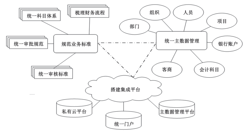 财务数据作为所有业务衍生发展的最终体现,承载着大量的业务信息和管理规范。企业首先应当梳理和规范各类财务请款和回款流程,统一企业科目体系、记账付款方式、费用报销模式、合同结算支付模式、财务审批规范和审核标准等,从而深入推进核算标准化和财务共享中心建设。与此同时,企业还需要从财务末端追本溯源,明确业务环节需要向财务环节推送的信息,找到业务系统与财务系统的对接点,从财务的角度反向推动业务流程的规范化,形成从业务到财务再回归业务的完整闭环控制。