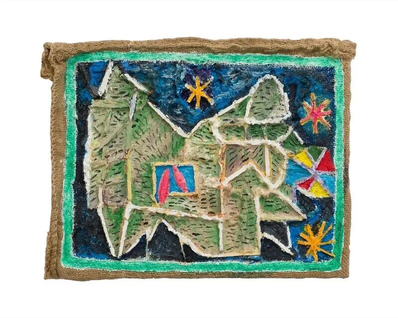Oil, wood and mixed media on burlap