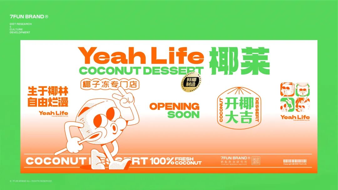 「椰莱 Yeah Life」不仅仅是一家椰子冻专门店,更是一种生活的感悟与态度,一种很Yeah的life attitude。椰子,做为生长在度假海岛的热带喜光作物,在高温、多雨、阳光充足和海风吹拂的条件下自由烂漫的生长,由此诞生椰莱品牌的slogan——生于椰林·自由烂漫。
