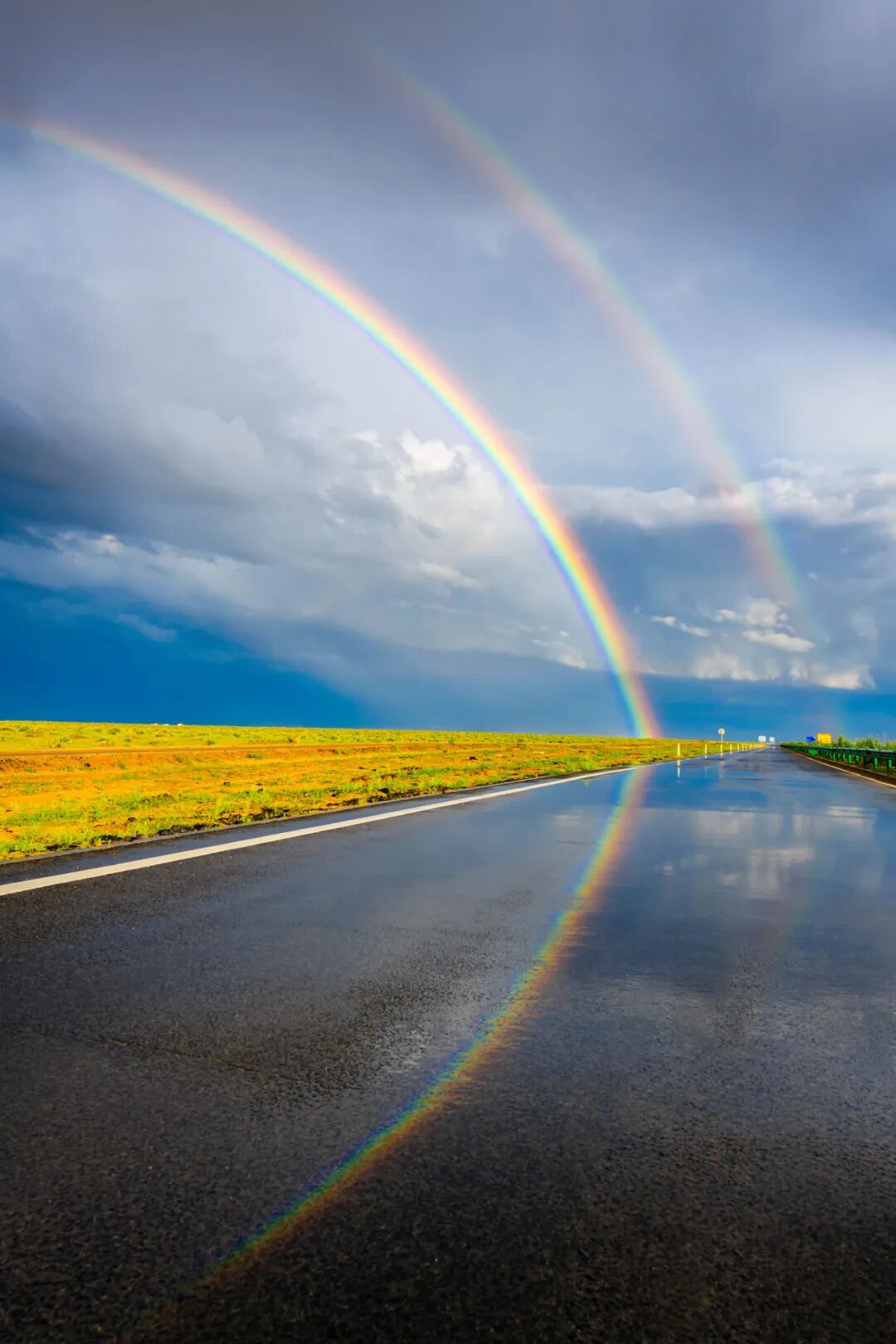 《海经》的《海外东经》里有一个怪兽叫虹虹,其形象是“各有两首”,这是一个前后各长着一个脑袋的怪兽,这个双头怪兽就是彩虹,甲骨文中的“虹”字就画成一条弧形的龙,弧形的两端各有一个龙头。古人将雨后彩虹想象成一条两头朝下的双头龙,龙垂下脑袋在河里饮水,就变成了雨水。