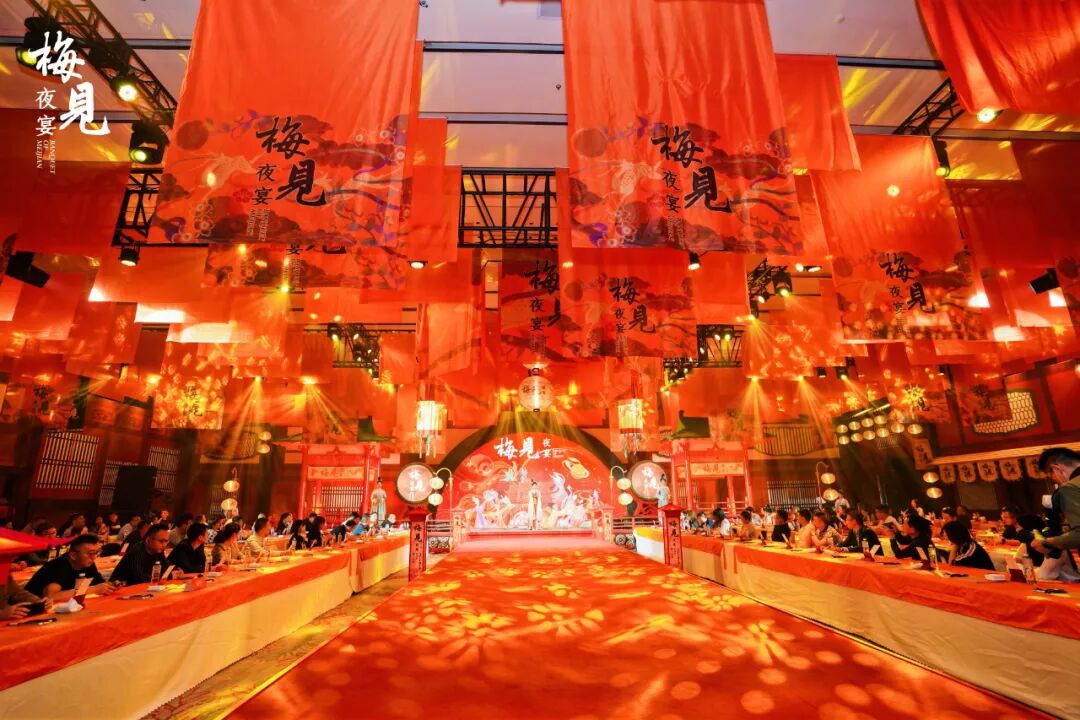 在线下活动打造上,梅见极力呈现唐宋盛世。梅见复刻《韩熙载夜宴图》;与国风音乐人柳青瑶推出视频《梅见夜宴》;与河南卫视合作《2022中秋奇妙游》;联合“长安十二时辰”的原班美术团队打造的线下梅见夜宴……