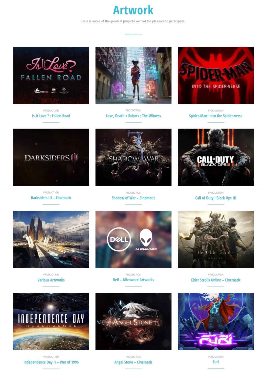 参与制作的也都是大家熟知的大项目,包括《蜘蛛侠:平行宇宙》、《使命召唤:黑色行动3 》、《爱死机》系列、《独立日2》、《光环2》等等。