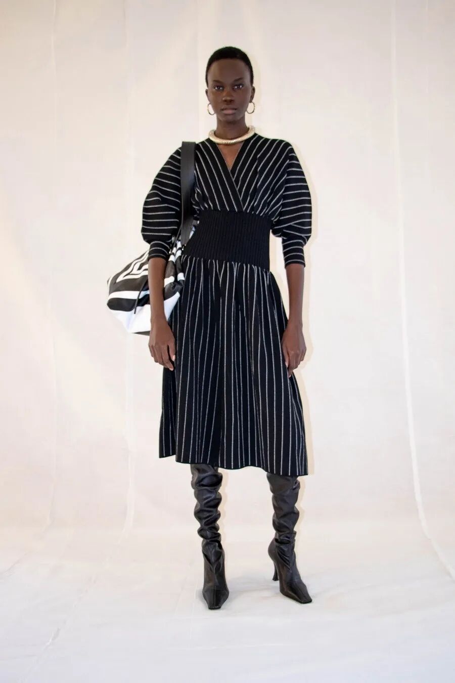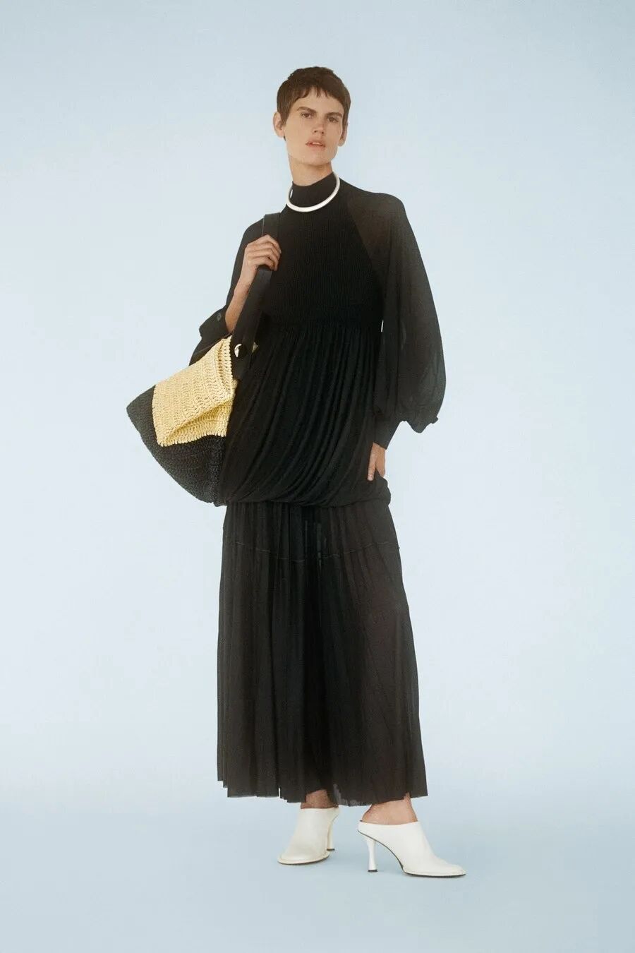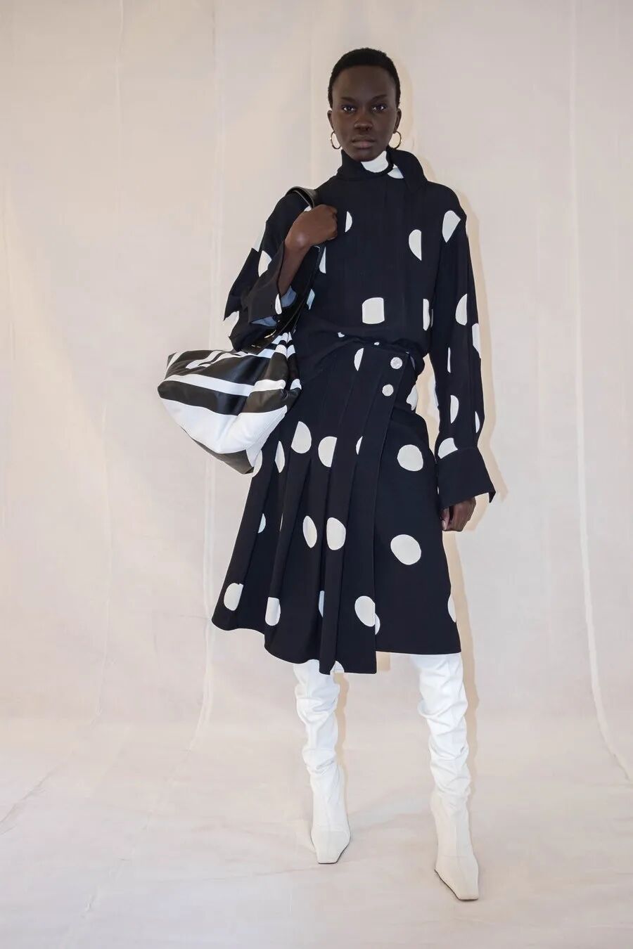 整体上,Proenza Schouler运用了褶皱、针织、条纹、波点等元素,不过多样的融入并没有让设计显得凌乱,极简的风格依然将人们的回忆带往90年代。
