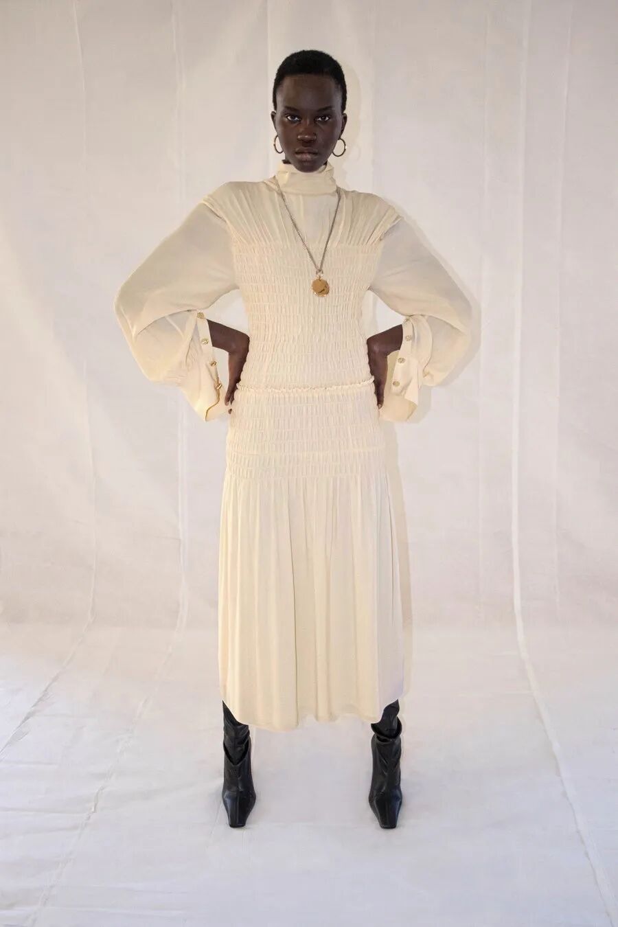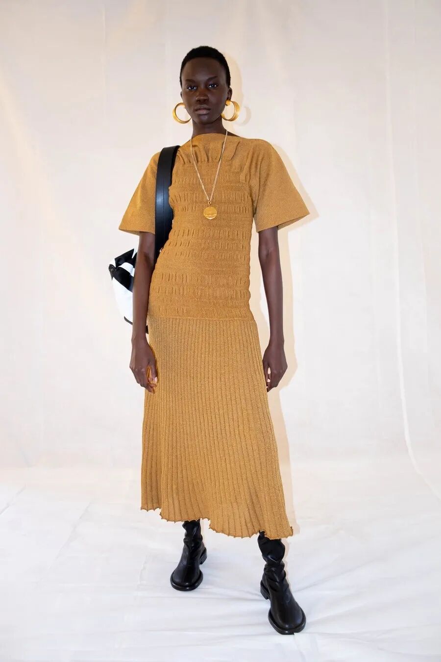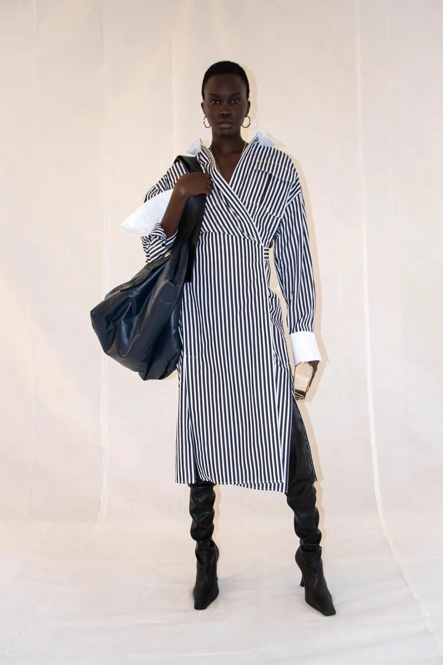 整体上,Proenza Schouler运用了褶皱、针织、条纹、波点等元素,不过多样的融入并没有让设计显得凌乱,极简的风格依然将人们的回忆带往90年代。
