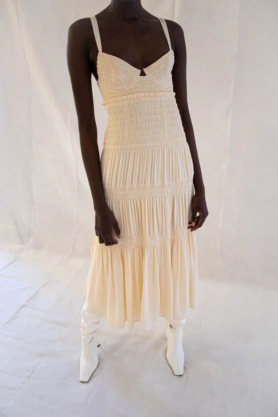 在2021春夏的系列中,Proenza Schouler将感人的表演力与城市的影像相结合。人们放弃了锋利的、边缘化的东西,而拥抱了温暖,感性更多的占据了人内心的高地。