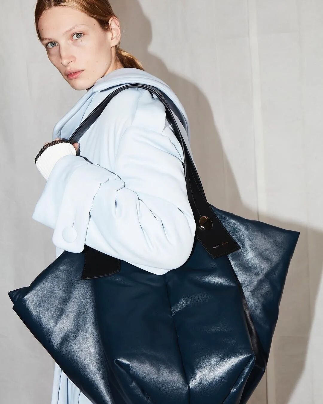 你能在Proenza Schouler的剪裁中看到符合当下大女人审美的廓形,也能看到在细节中精致与质感。极简的视觉营造出的利落,给人一种错觉,以为Phoebe Philo的Old Celine爷青回了?不不不,这是Proenza Schouler,纽约的街头什么都可能发生。