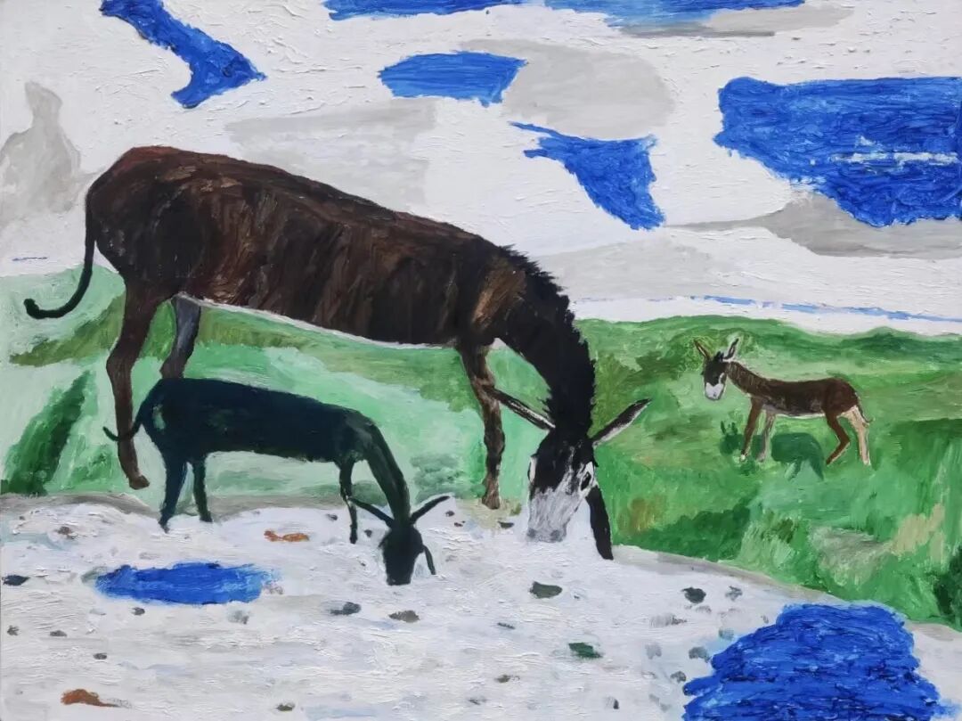 初雪,布面丙烯、油画棒,50x40cm,2022