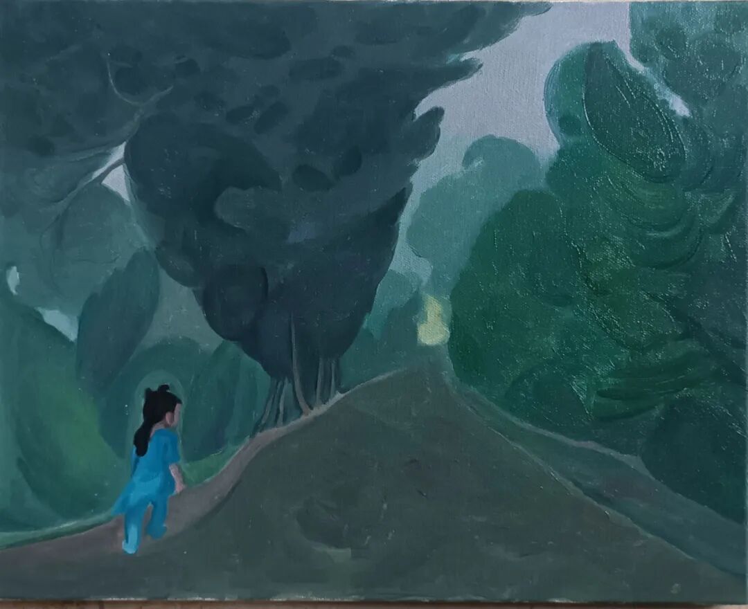 小心前面的蝴蝶,布⾯油画,40x50cm,2022