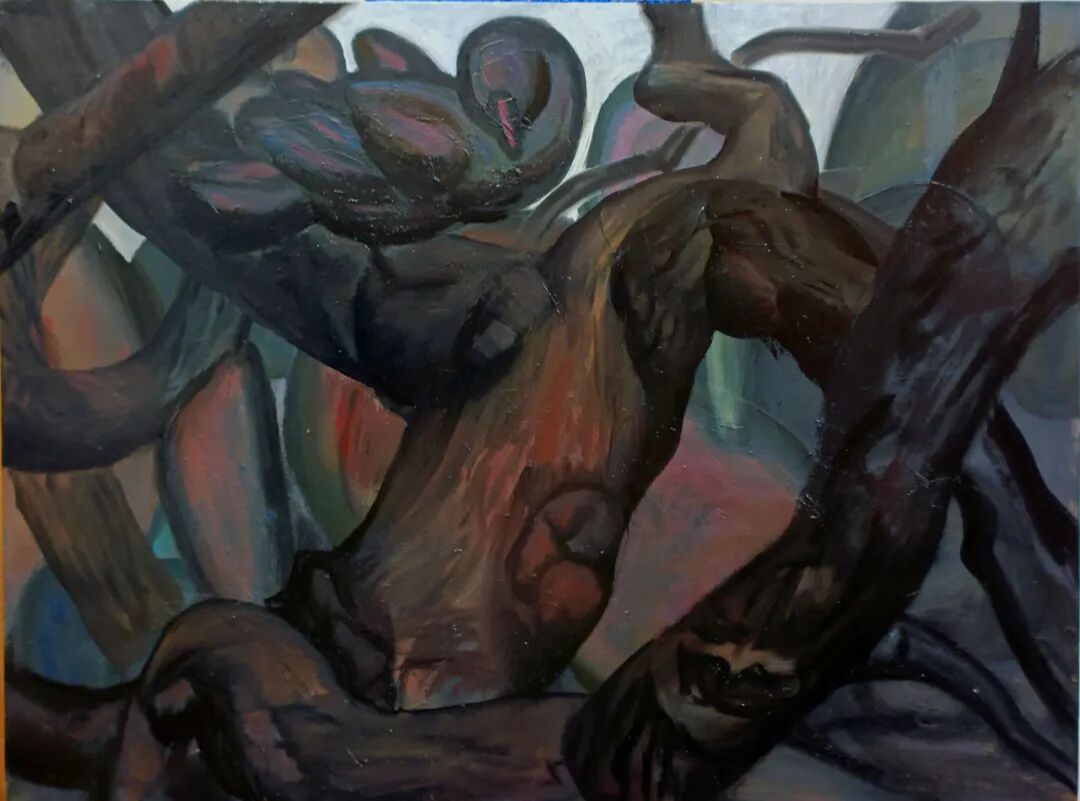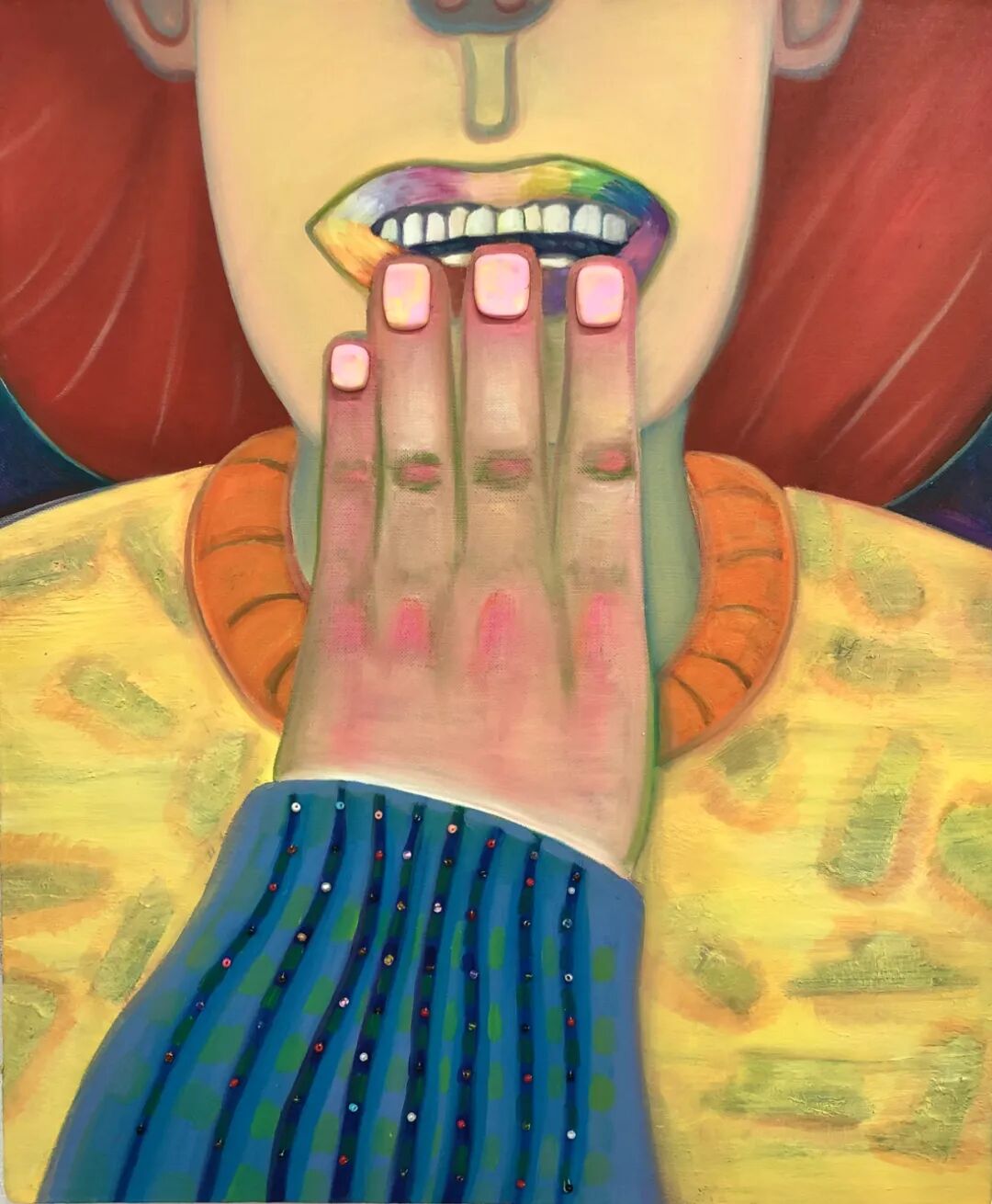 在水被浪费的地方节约太阳,布面丙烯、油画棒,50x40cm,2022