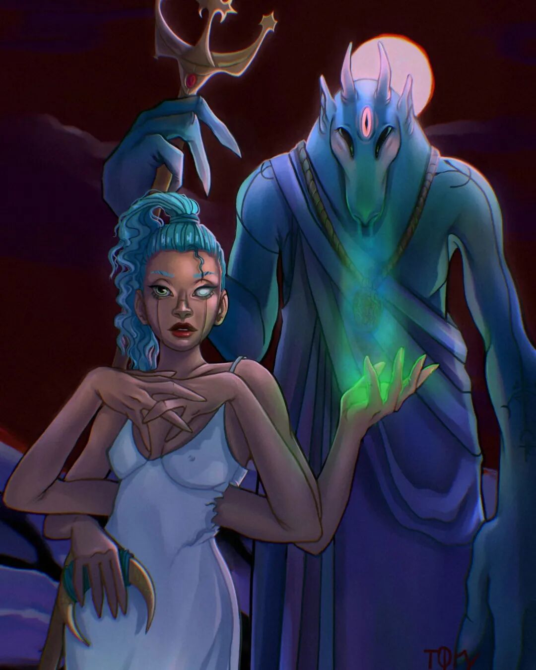 "Imostly depict females interacting with the monsters.The reason to it,is that I deeply believe that women have deep,almost ancient connection to the existence,to God,in some sense."