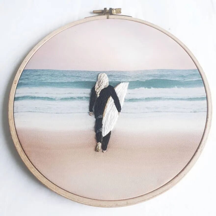 之所以创作这样的作品,弗洛尔直言自己作品中的女子,就是自己。她不能说走就走的旅行,都被自己刺绣出来了。对于弗洛尔来说,自己的作品虽然不如专业刺绣艺术家的精致,但是每一个都是独一无二,倾注了自己的热情和真心。一般,一件作品需要8个小时的时间才能完成。