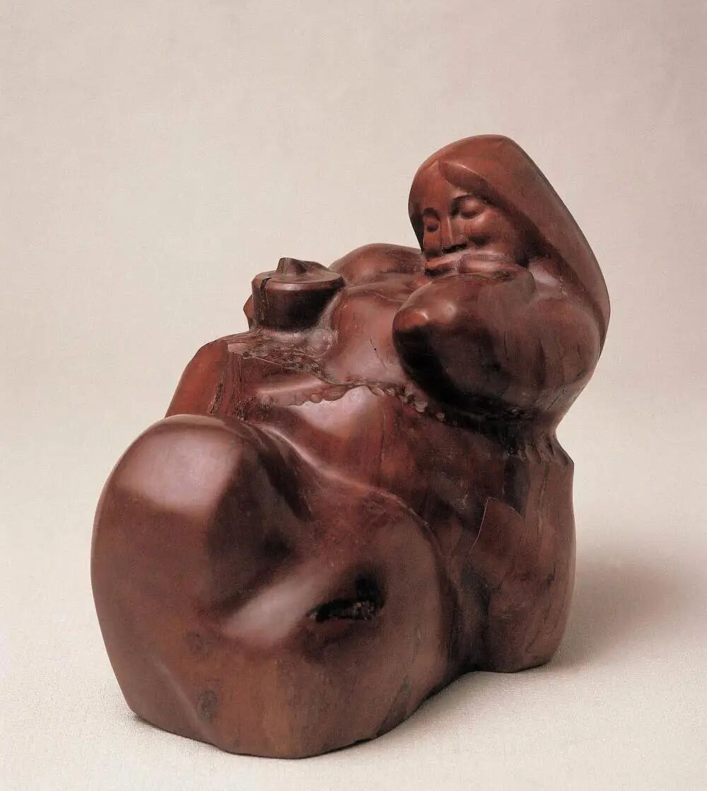 余志强作品 《醉》木雕 31×40×30cm 1984年