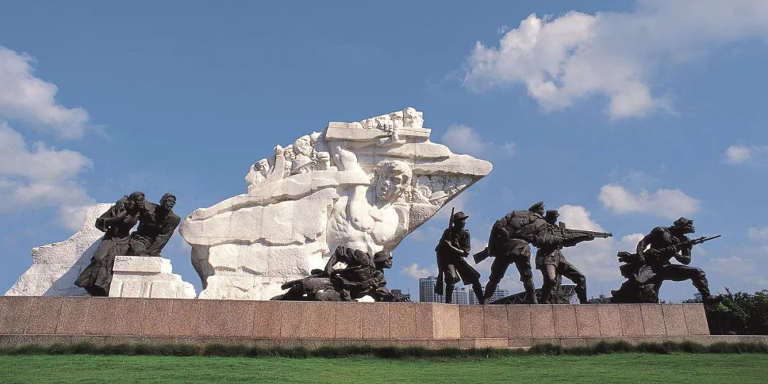 铸青铜、汉白玉 高5米、长19米 立于上海龙华烈士陵园