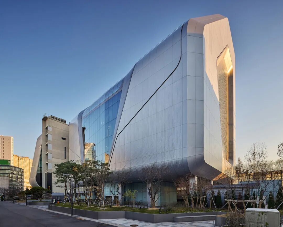 总部位于阿姆斯特丹的UNStudio使用清晰的几何线条和金属表面为 K-pop 明星制造商 YG娱乐的首尔总部设计了全新的大楼 —— 一座充满未来感的办公建筑。新大楼从2017年开始直到2021年在韩国首尔建成,建筑面积共为18801平方米 。