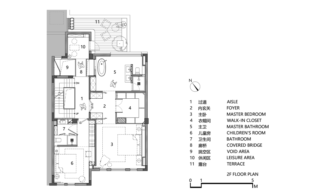 家庭全员的情感凝聚也需精心安放,三楼活动区以大道至简的廓形,悦纳多元之需,强调其变化与成长性,也为未来预留更多可能。一进到底的格栅节奏井然,延伸引导视角并兼具储物功能,与室外露台联动,模糊界限,将生活的界面扩充得广袤无垠。