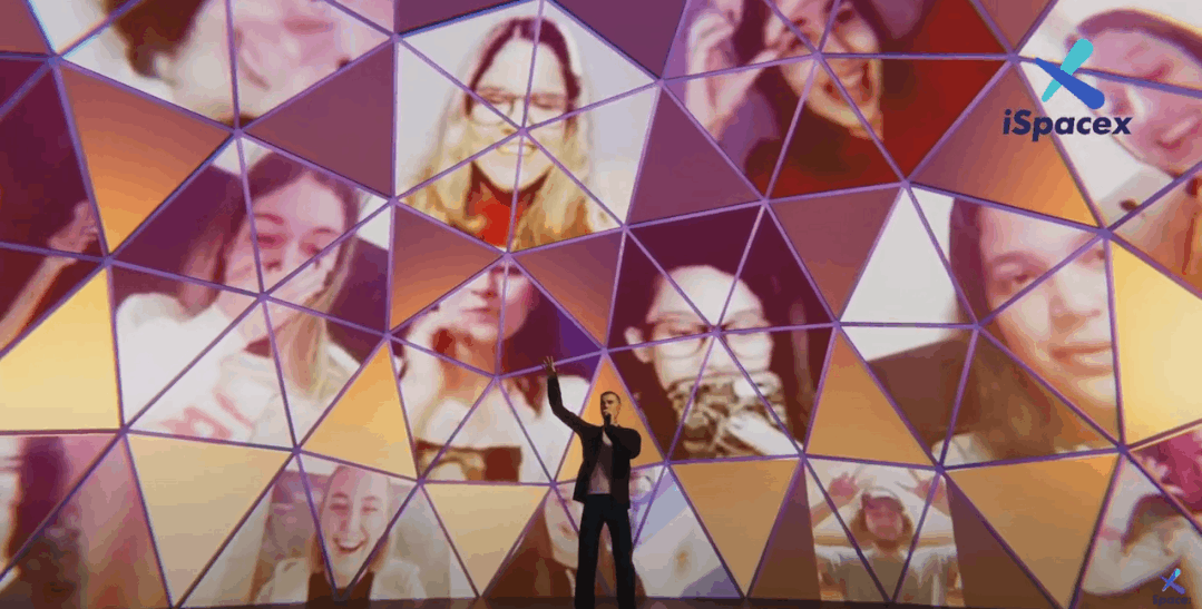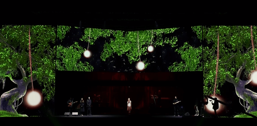 尼卡通过现场全息影像投影的方式与舞台中央相连接,在同样以全息影像呈现的来自不同国家的十个儿童的陪伴下缓缓登场。