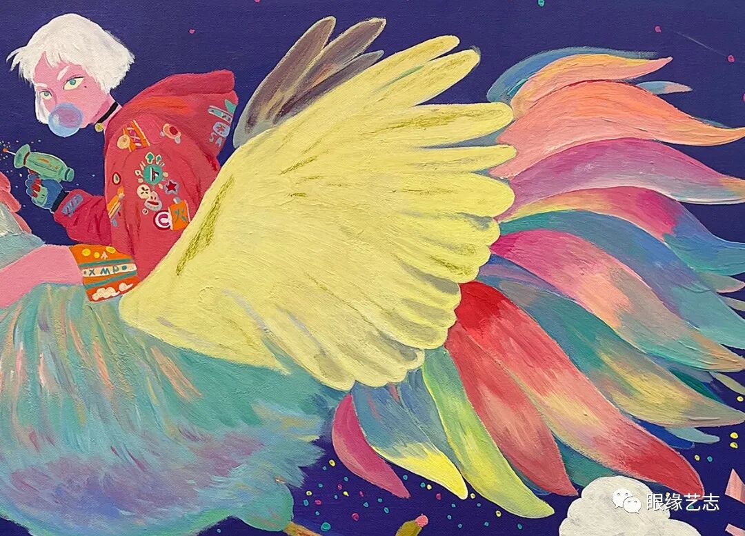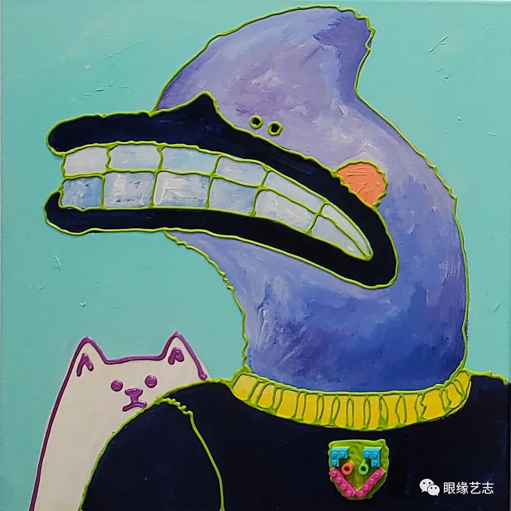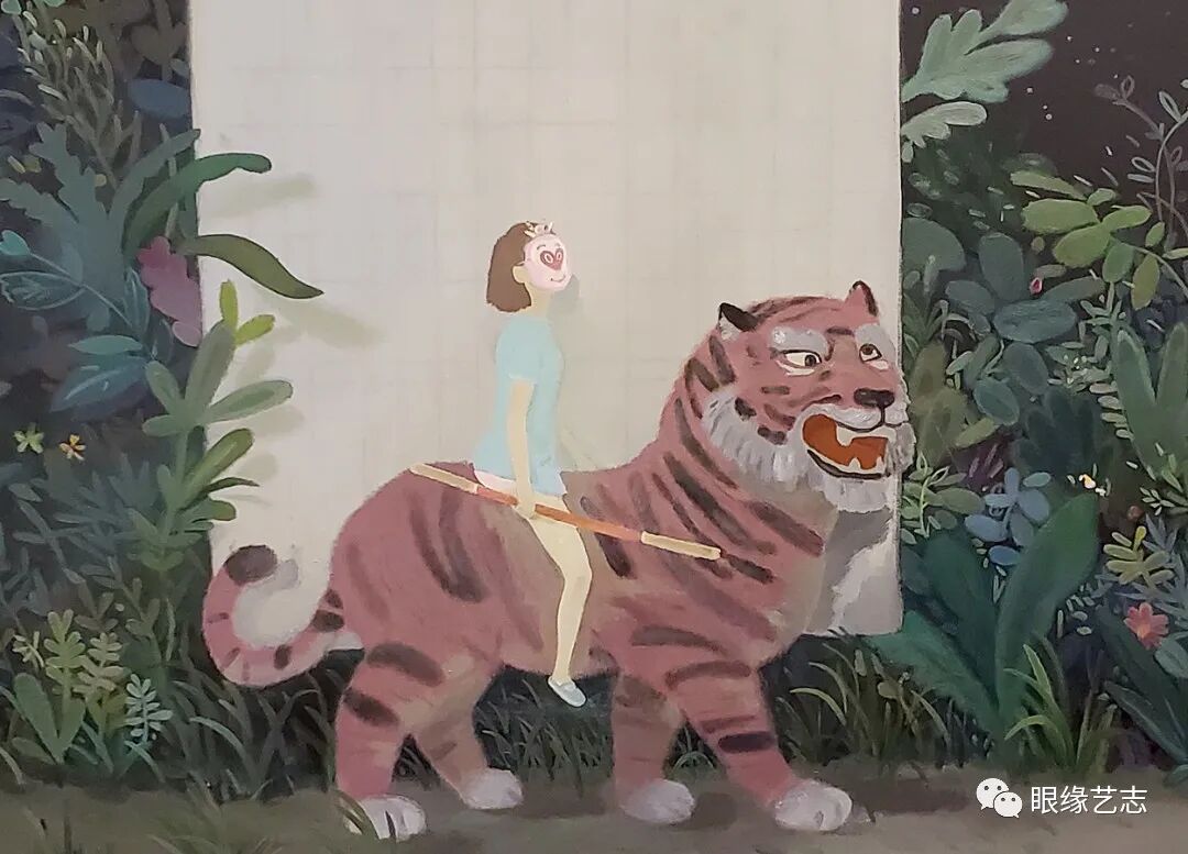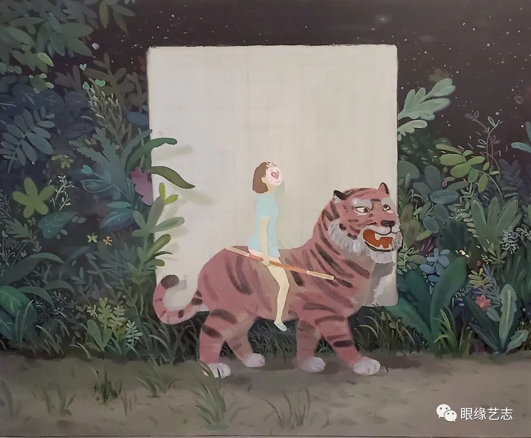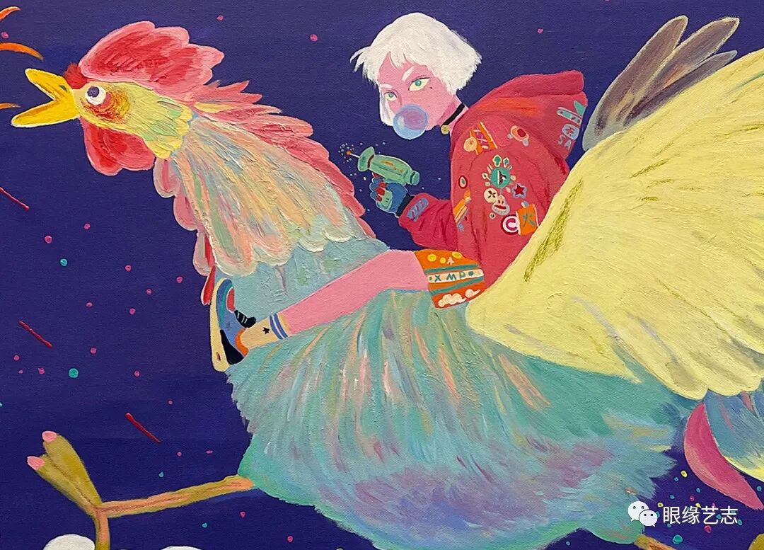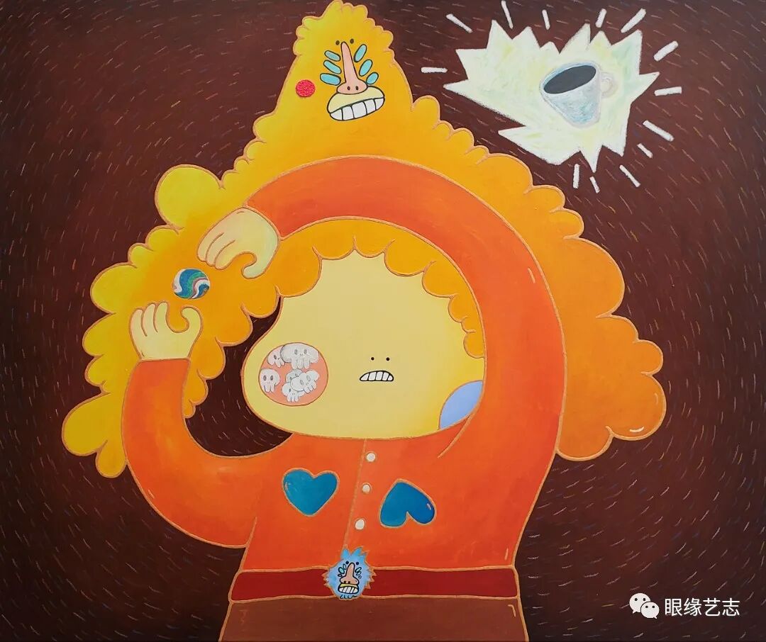 看似低幼的笔触,人们却可以从中感受到难得的叙事性,而戏剧化的表现形式也很容易让观者在众多作品中瞬间识别出它们的存在。独特的风格、灵动的色彩、梦幻的布局以及涂鸦式的创作模式也赋予了画面十足的视觉能量。