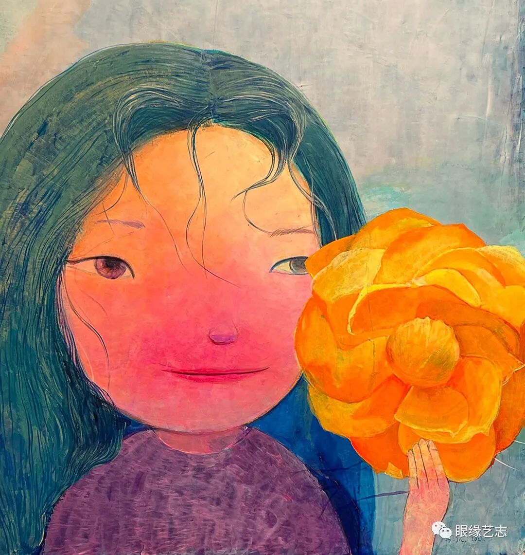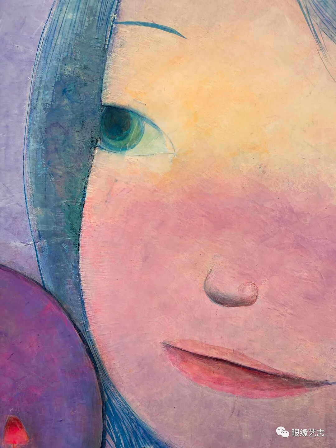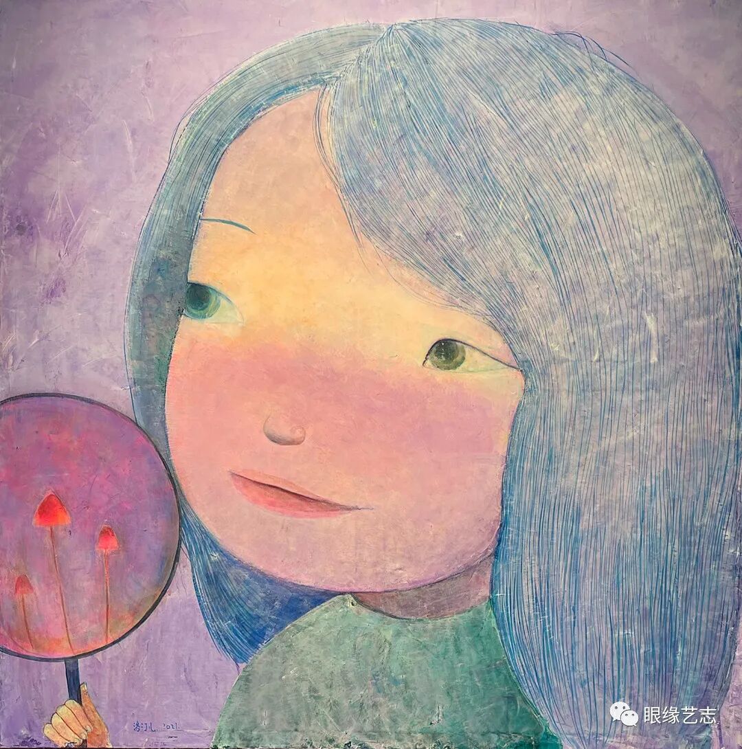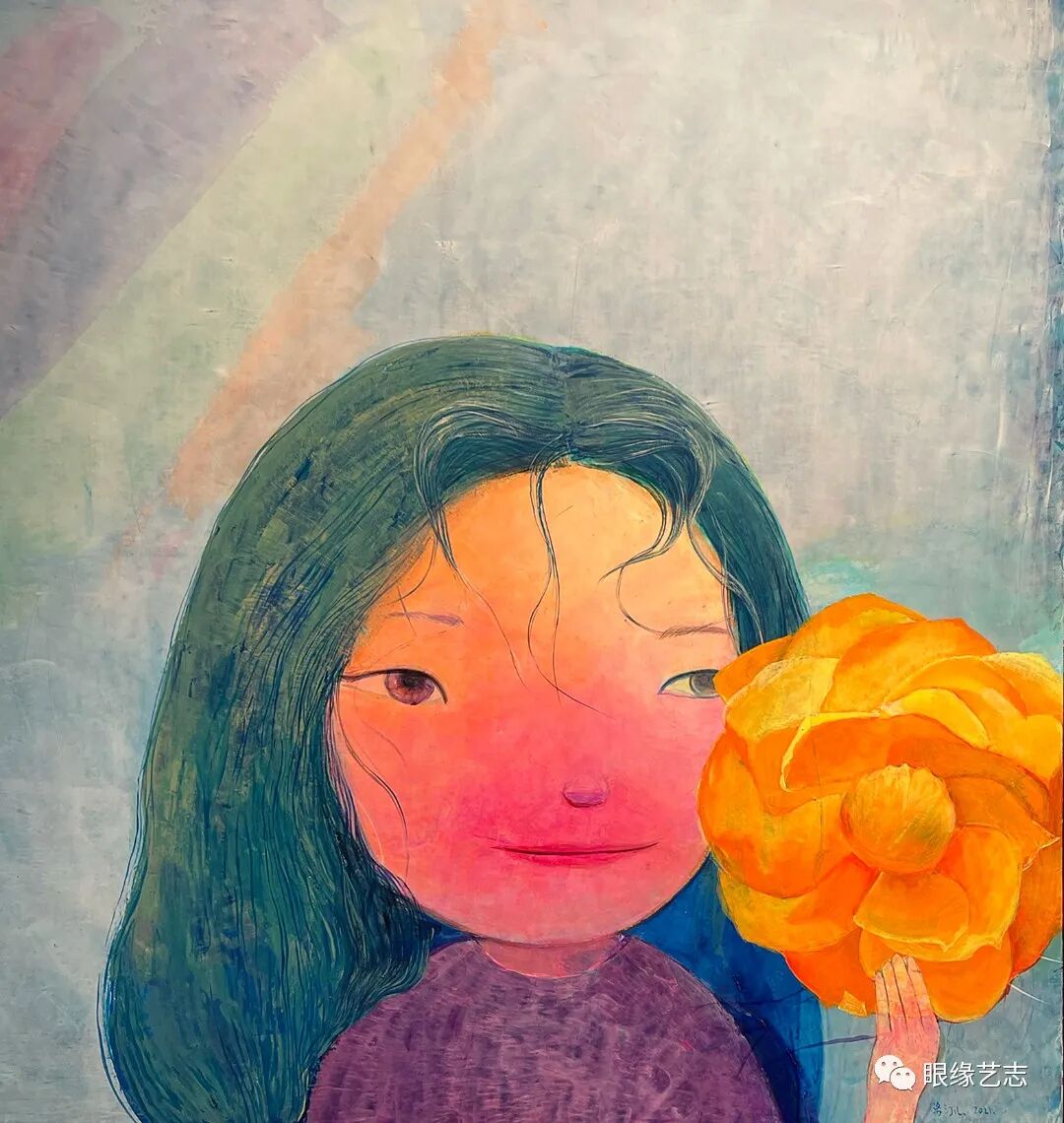 在忻洛汀的世界中,小女孩没有朋友和小动物的陪伴,自始至终都缺乏足够的安全感。她将自己的内心构筑在小女孩的身上,并以此与这个纷繁的世界保持着距离。她在画布上记录下自己的童真,为的不是抵抗这个难以适应的世界,而是要拥抱曾经拥有过的回忆与幻想。