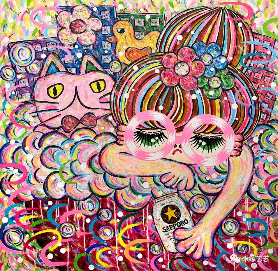 日本画家中居铃从未在专业的艺术院校学习过,直到2009年才开接触绘画。她喜欢色彩混合在一起的样子,并借助独树一帜的画风刻画了一个可爱与愤怒并存、戴着粉色边框眼镜的小姑娘。中居铃认为自己的创作并不是普通且直接的卡通肖像,而是一段段采取挪用的方式分享日常生活中的小故事。