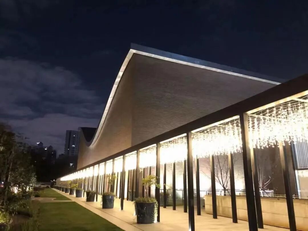 内部采用竹编编织的反射板和由北海道柏木制成的舞台地板,工艺极具匠心,建筑外部的陶土砖和传统花园则突出了中国的特色。