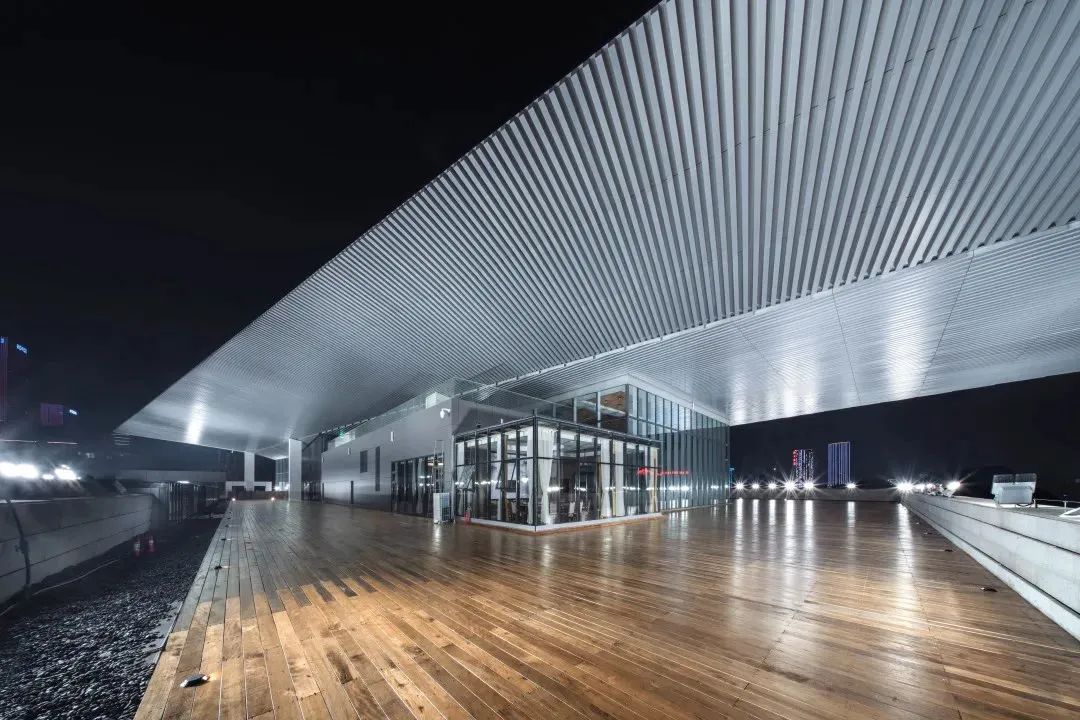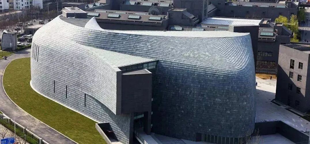 大屋顶是新博物馆的标志,底面采用蜂窝铝板,顶面采用立面双咬合锌屋面系统,唤起人们展望未来,也强化设计的时代感。