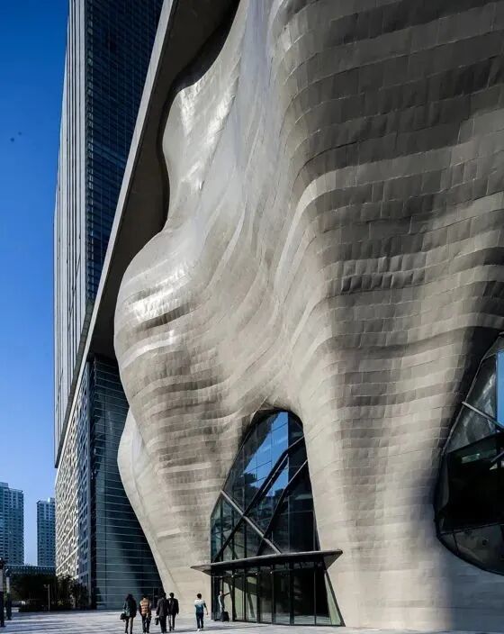 项目坐落于上海曾经法租界的核心区,外形像一个游泳池或者马鞍,因为这里曾经是徐汇的调水池,建筑本身坐落在巨大的泉水上,以抵消地下三条地铁线的震动对音乐厅的影响。