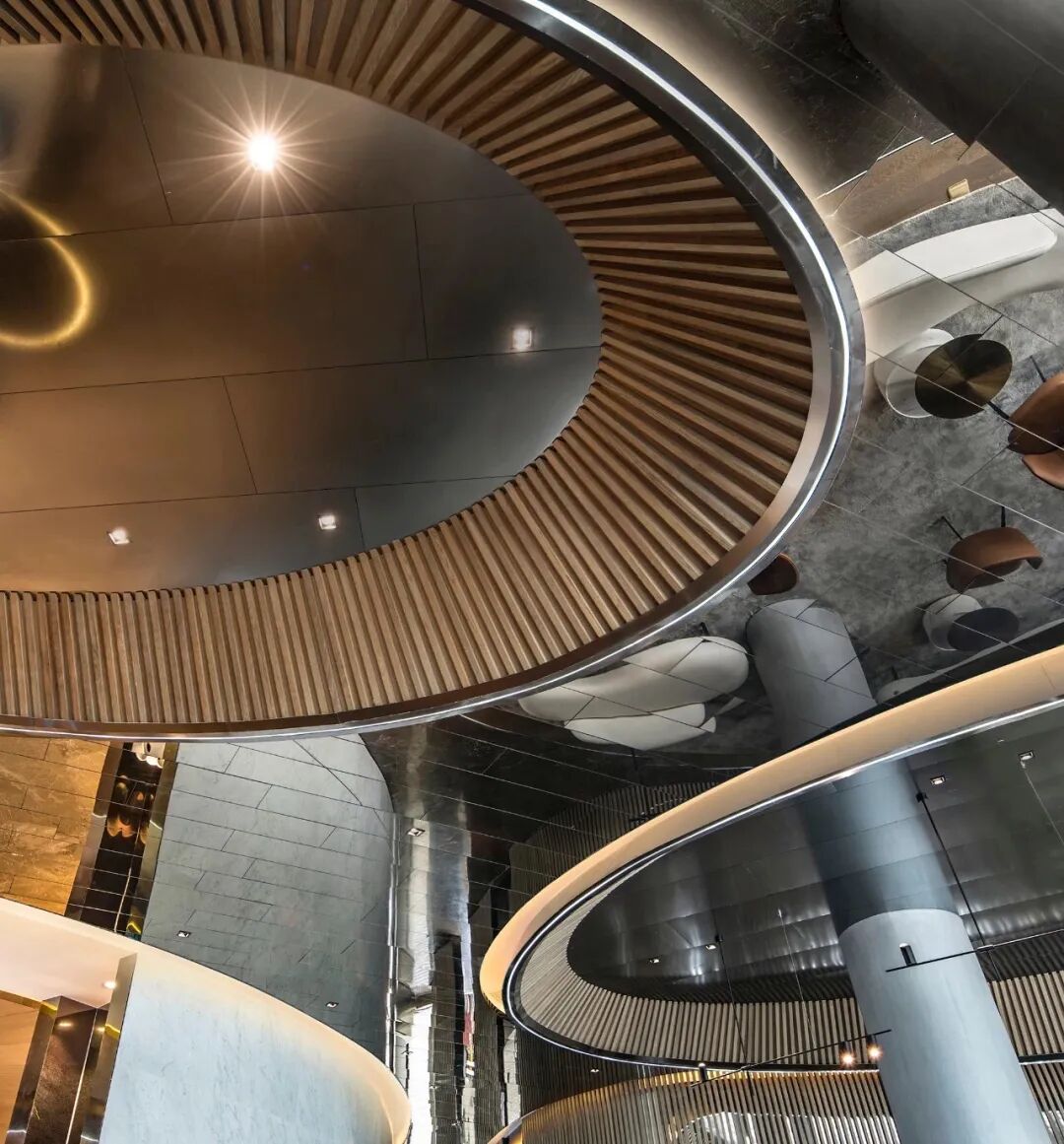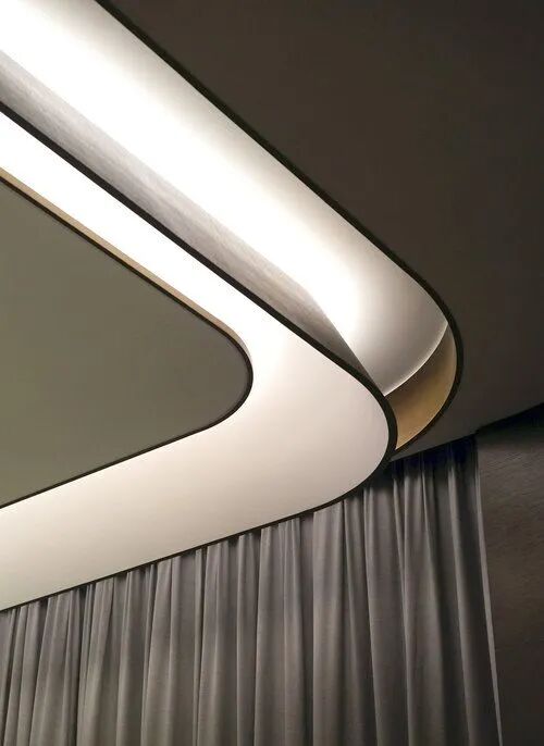 像这样的倒挂式的异形天花造型,能够增加空间的视觉张力,作为空间中的设计亮点,丰富和呼应整体空间造型和元素,类似这样的天花造型还有很多,如果从工艺上分析它是如何实现的,又有哪些需要注意的点呢?