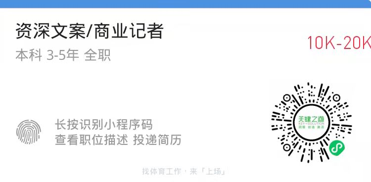 体育圈「上场」招聘是由ECO氪体独立研发,垂直于体育大健康领域的互联网招聘平台。自上线以来超过1200家公司发布岗位8000余个。目前已累计10万从业者简历,成功帮助优酷体育,环法中国赛,深圳网球公开赛等招募团队。