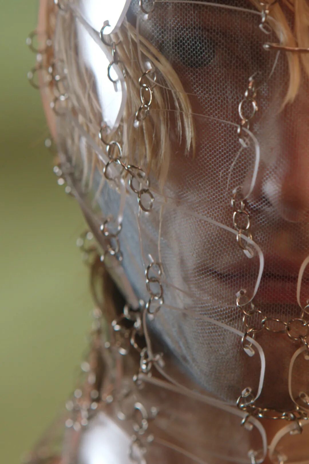 经典的高定工艺服饰轮廓,与幻觉场景中的手术服元素或冰沙色的舞会装扮融合,以切割和拼接的形式惊艳呈现。