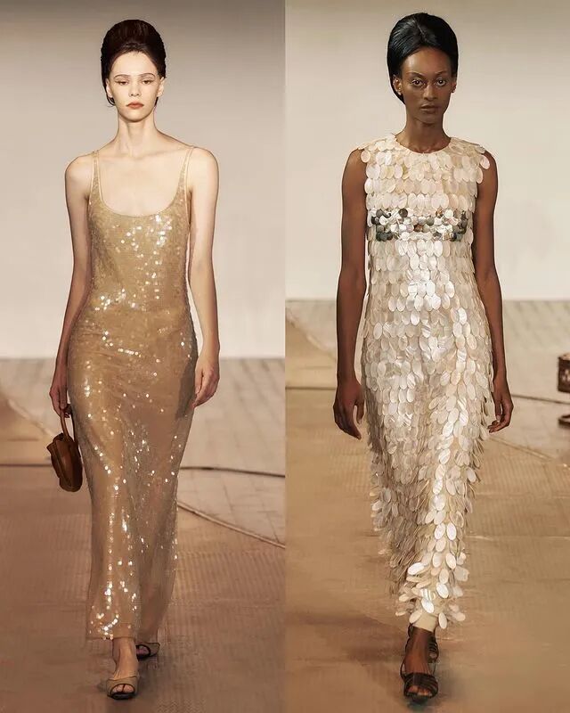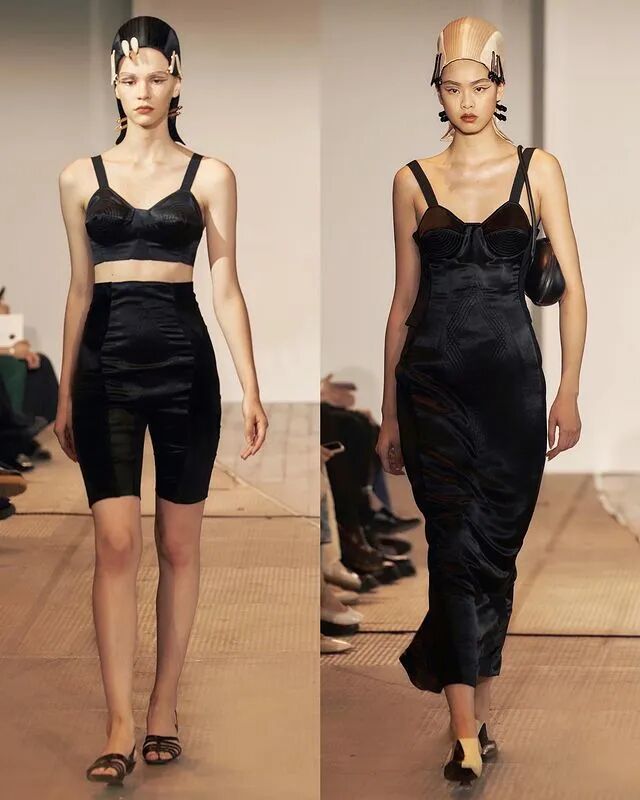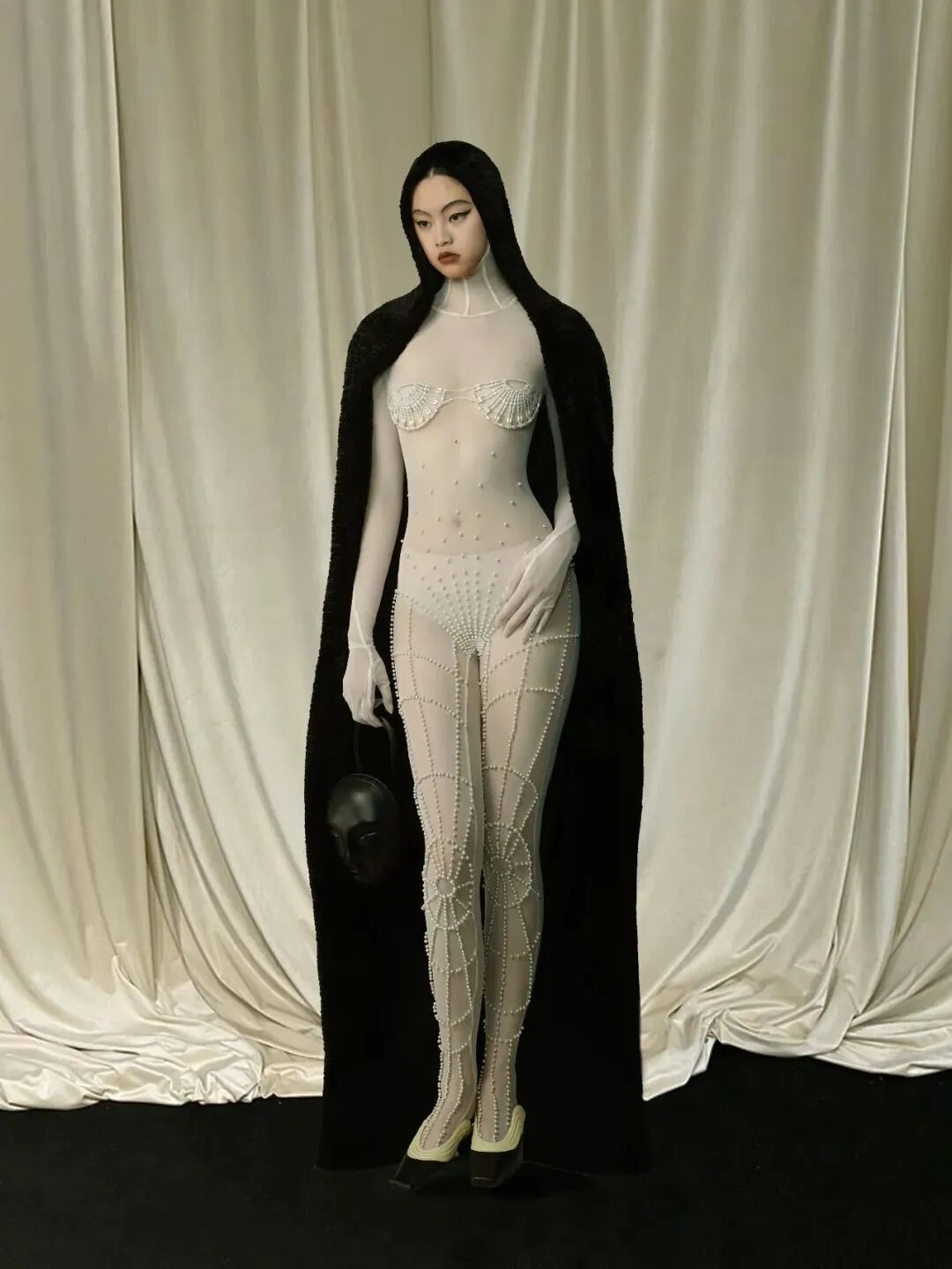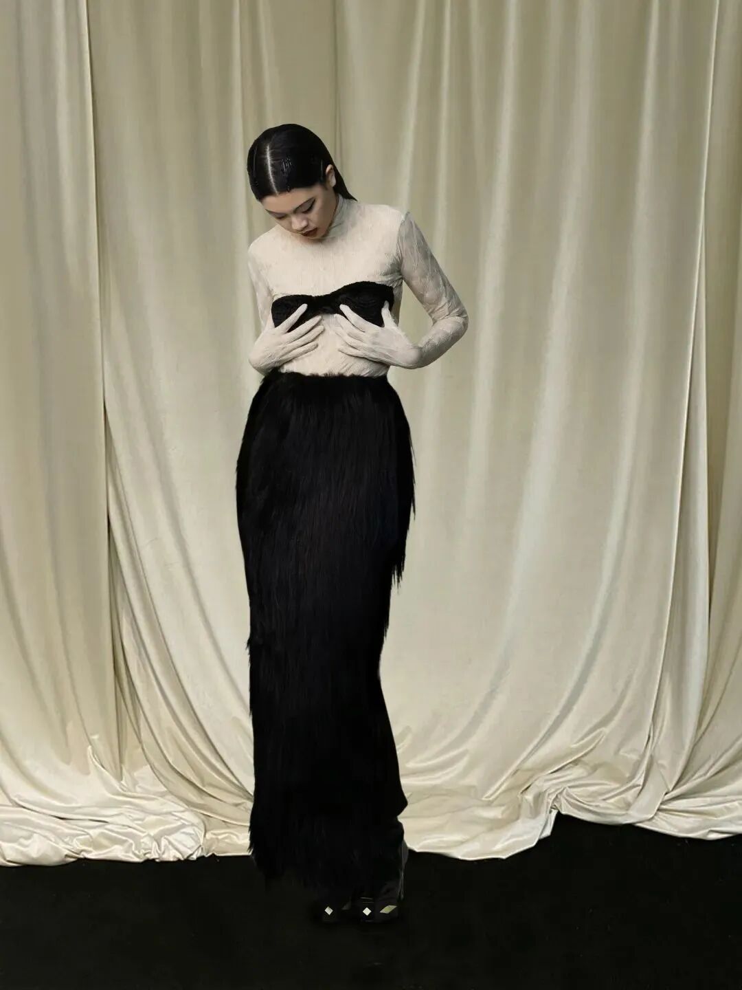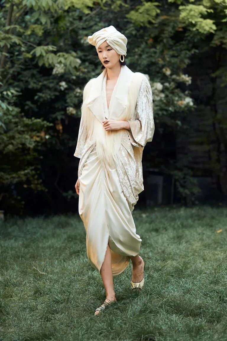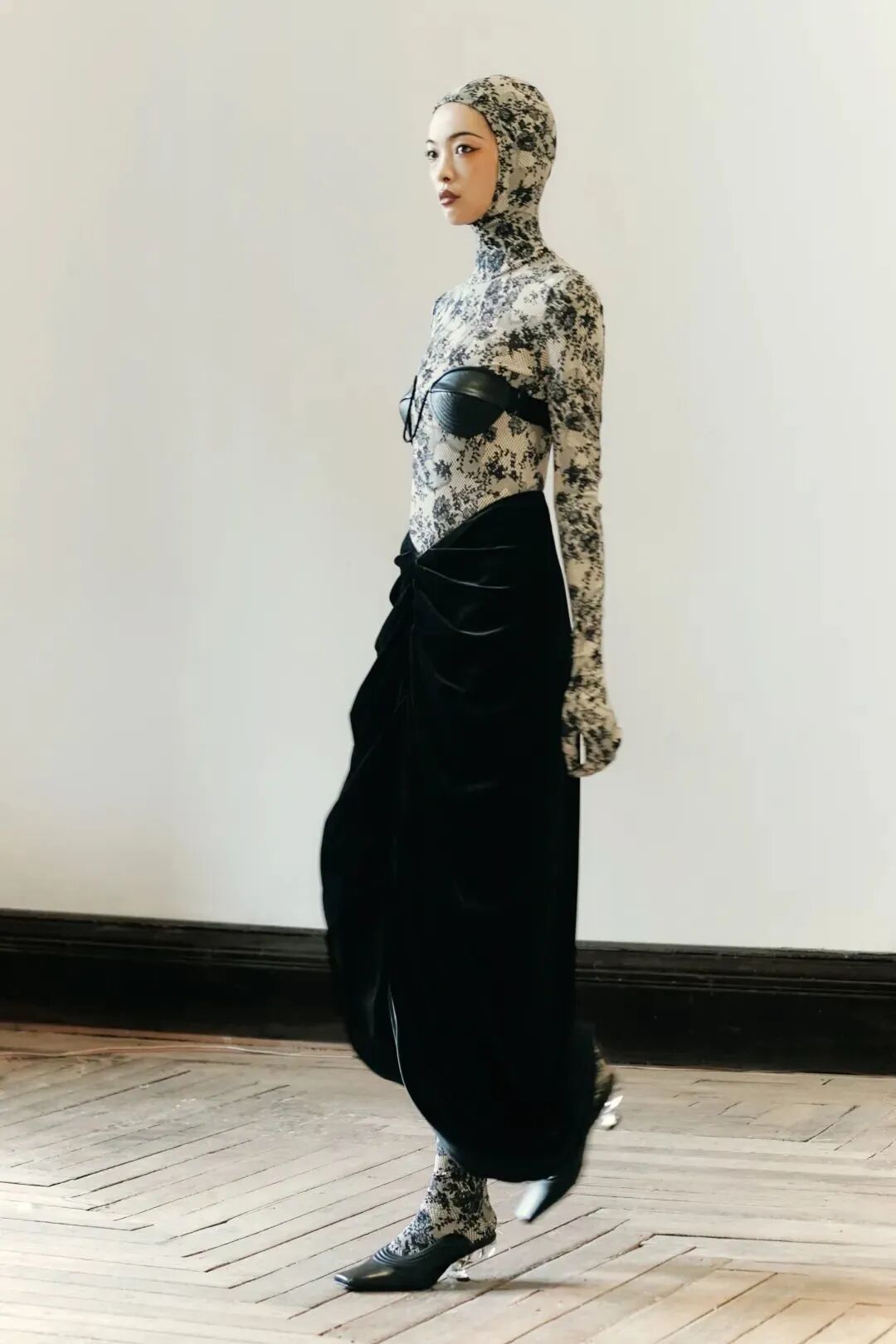 Zhong Zixin充满雕塑感的服装廓形、抹胸、流苏等细节,以及充满褶皱的长裙等,经典元素,也让我们想起往季系列中的一些瞬间。