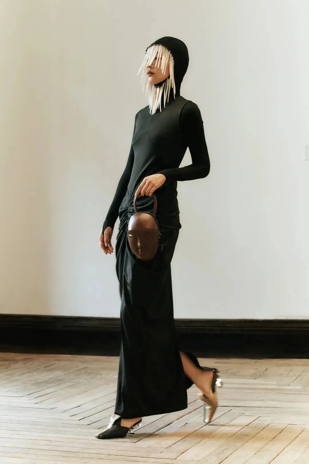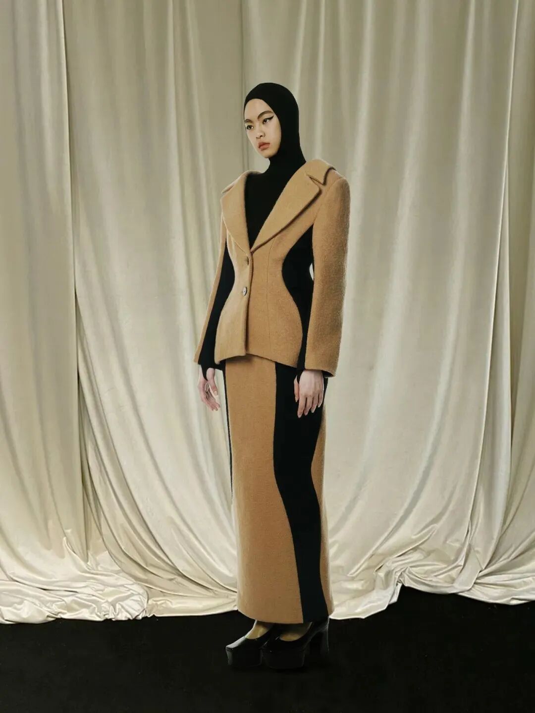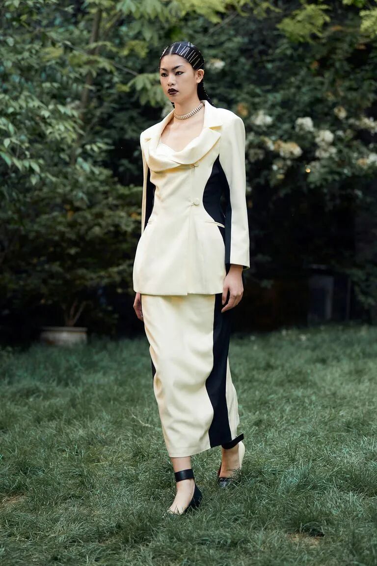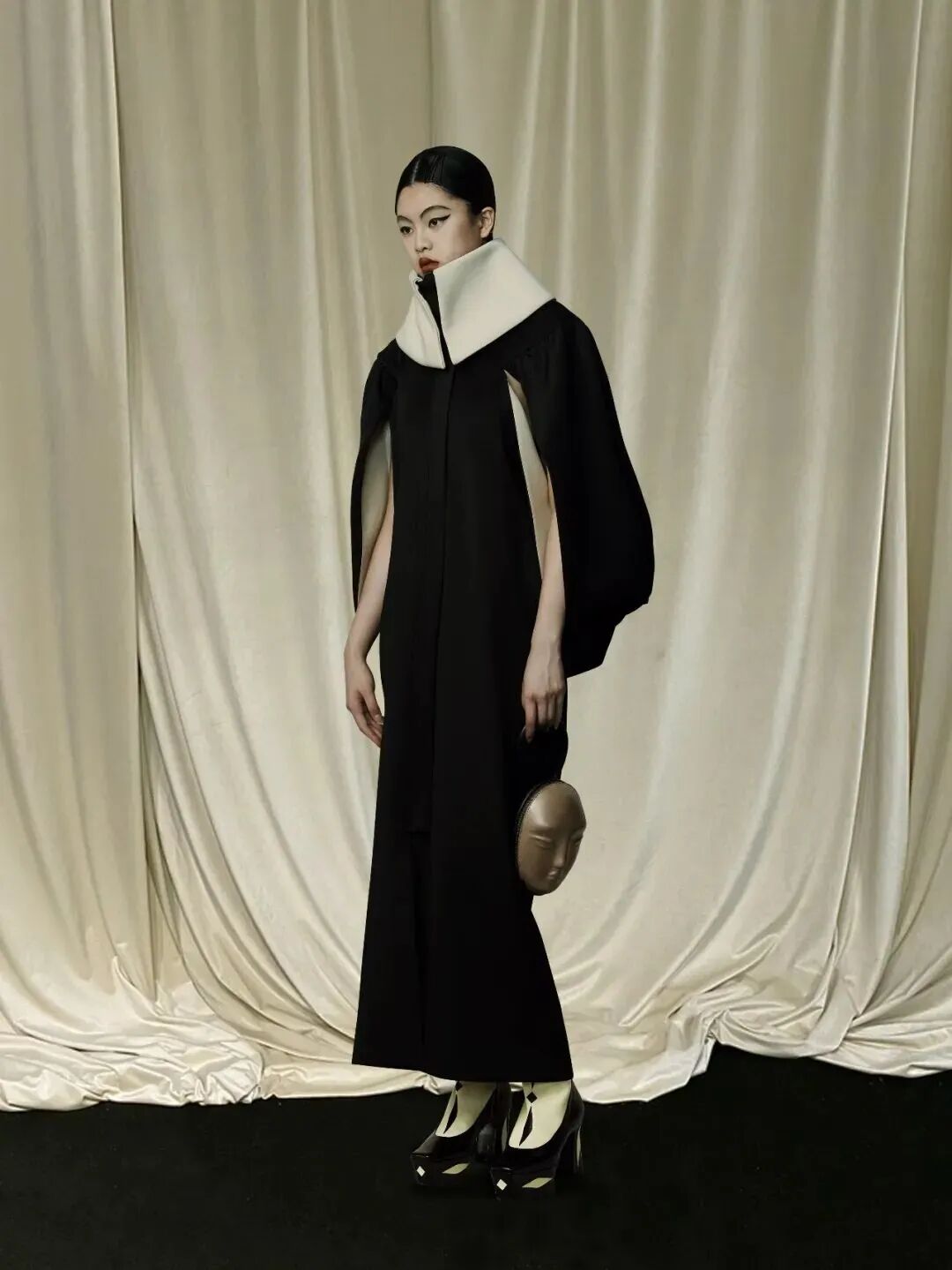Zhong Zixin 2022秋冬系列“大都会”灵感来自同名科幻电影《大都会》,系列设计承袭了品牌一贯的简单的黑白和大地色系。