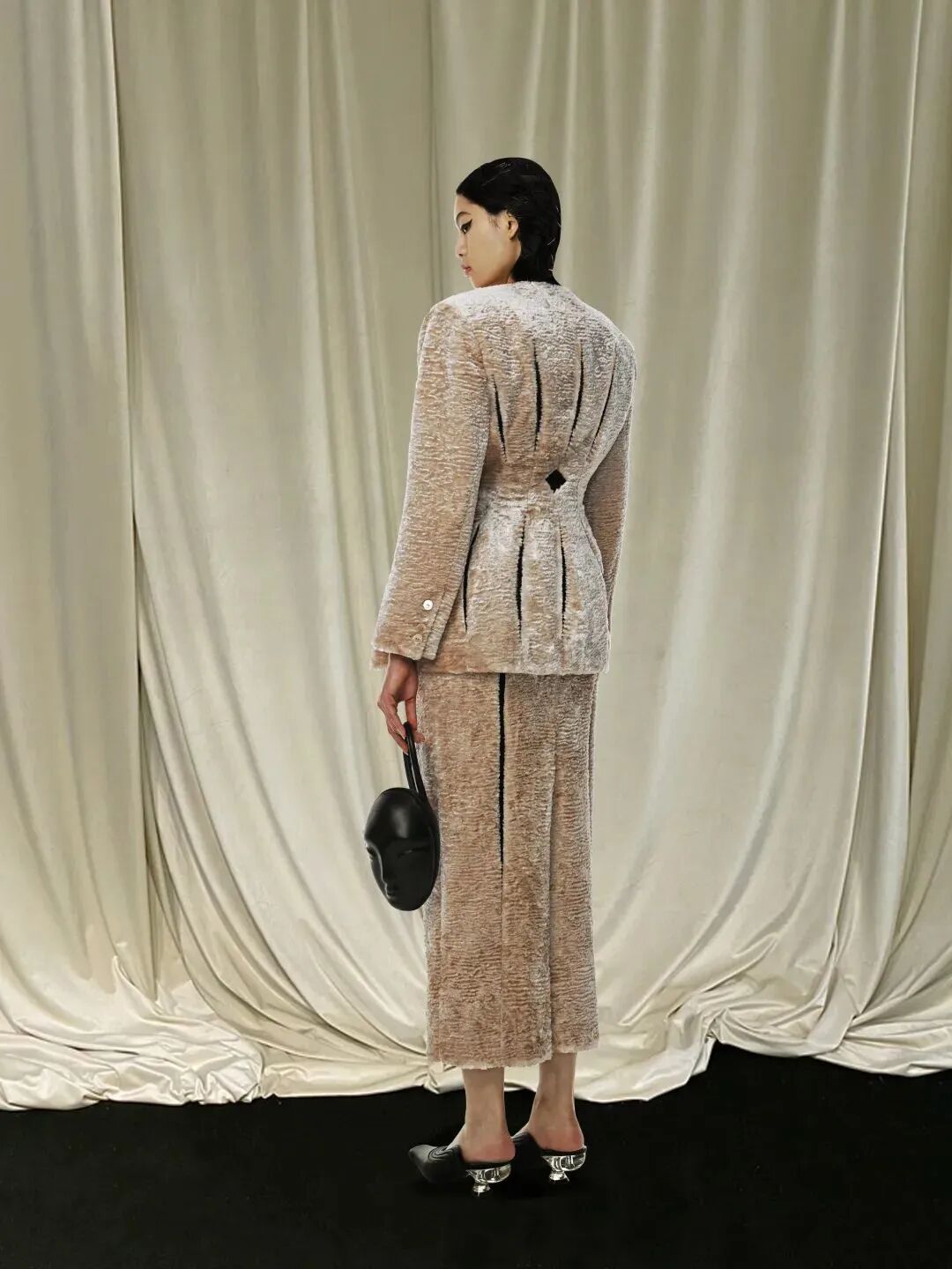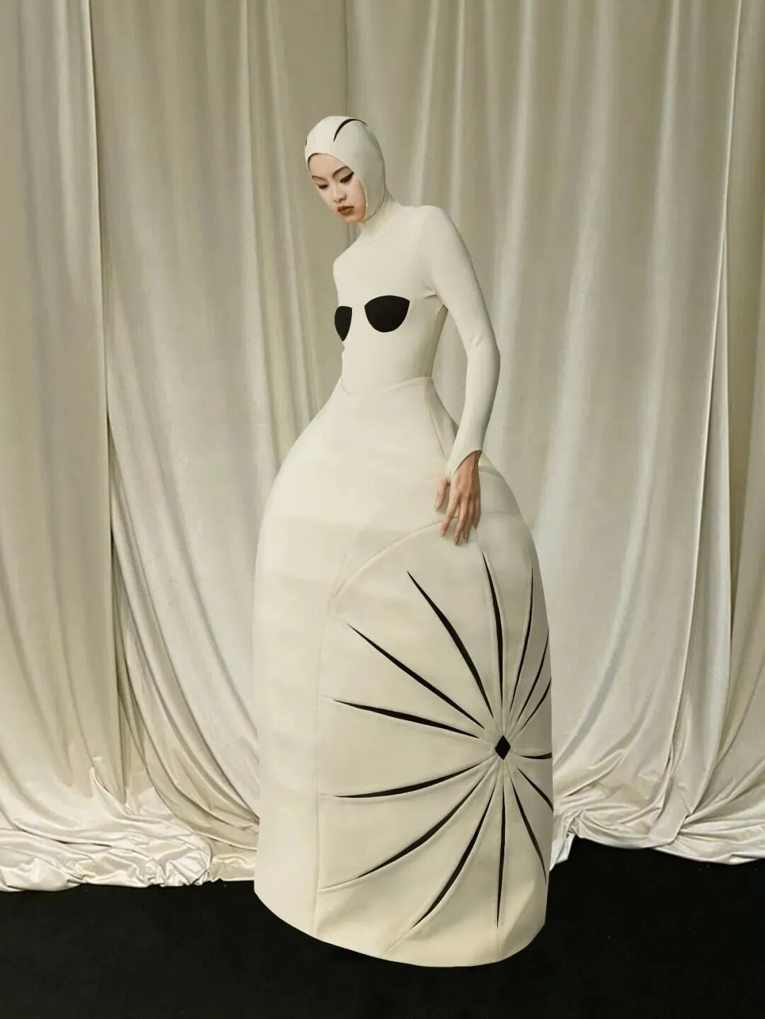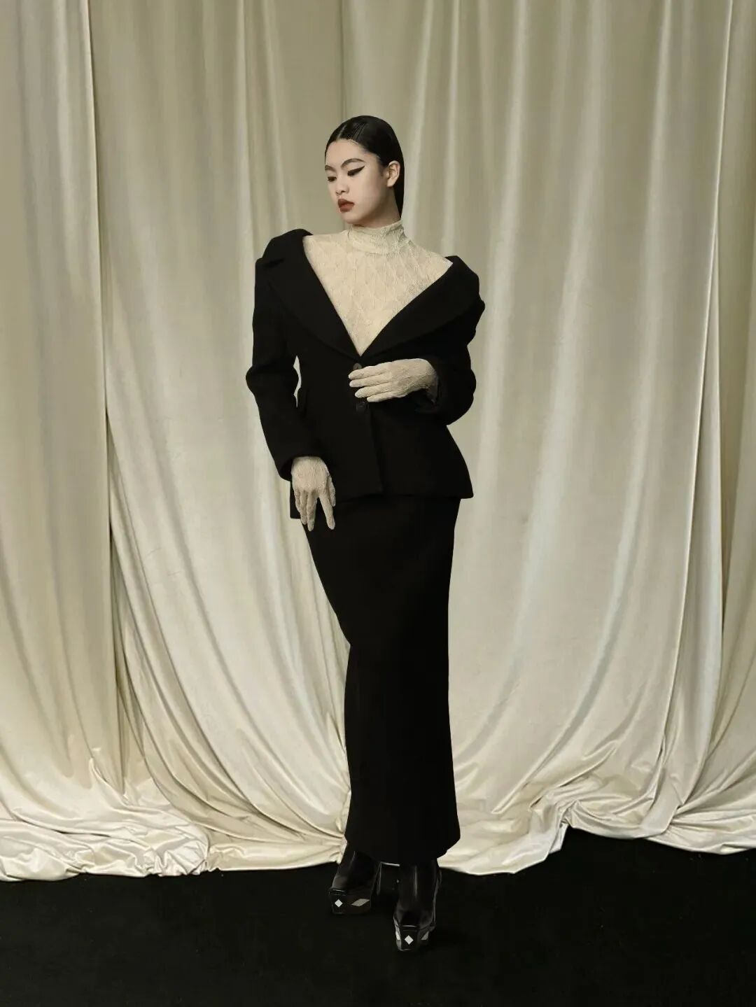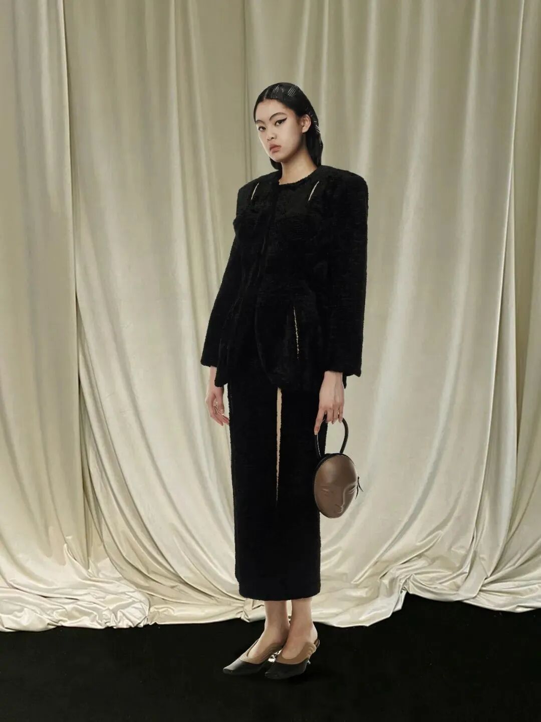 Zhong Zixin 2022秋冬系列“大都会”灵感来自同名科幻电影《大都会》,系列设计承袭了品牌一贯的简单的黑白和大地色系。