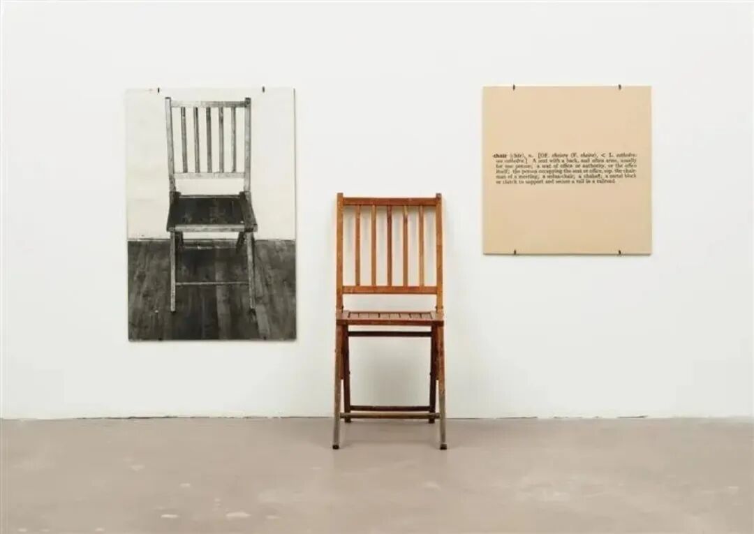 在这个作品中艺术家用真实的椅子、椅子的照片和关于椅子的文本解释,来讨论现实、形式和观念之间的关系,而本系列名称也来自于此。