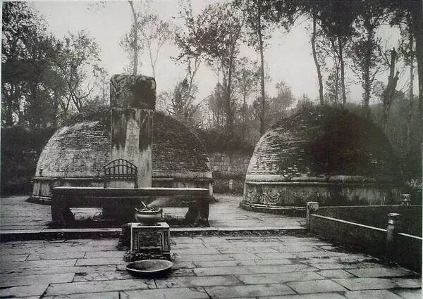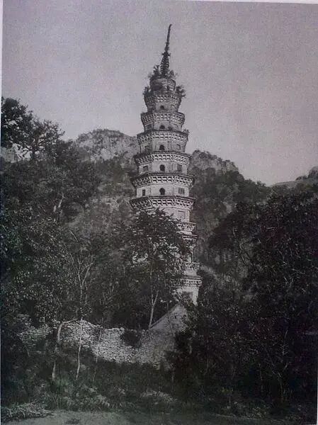 直隶省 北京 西山矗立在白桦林中碧云寺塔的石塔背面