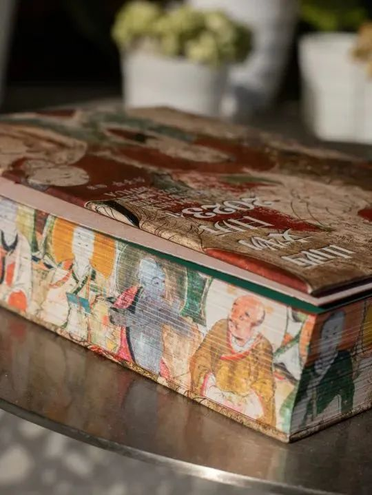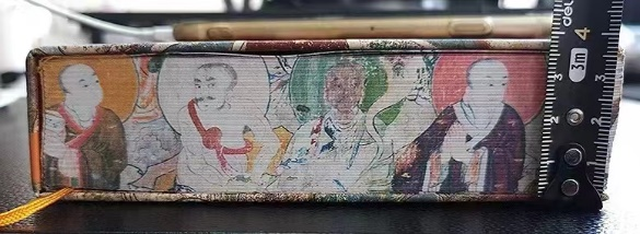 书口处以染色工艺呈现出五台山佛光寺罗汉图,超脱烦恼的罗汉邀您共游日历中的出尘之境。