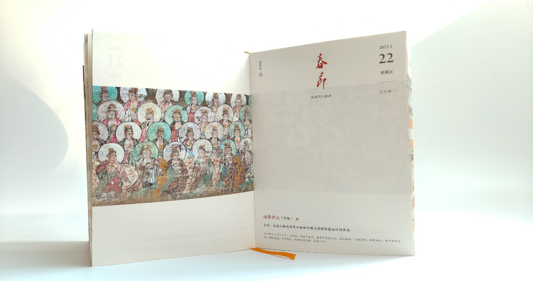 承载着壁画艺术的《山西文物日历2023年·壁画》凝结着山西千年壁画艺术之精华,犹如一把通向古人精神世界的钥匙,每翻开新的一页,鲜活的历史气息立即萦回在您的周遭。