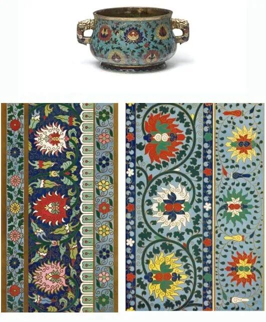 上:明中期铜胎掐丝珐琅炉
