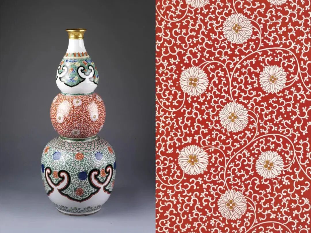 左:五彩描金三层葫芦瓶