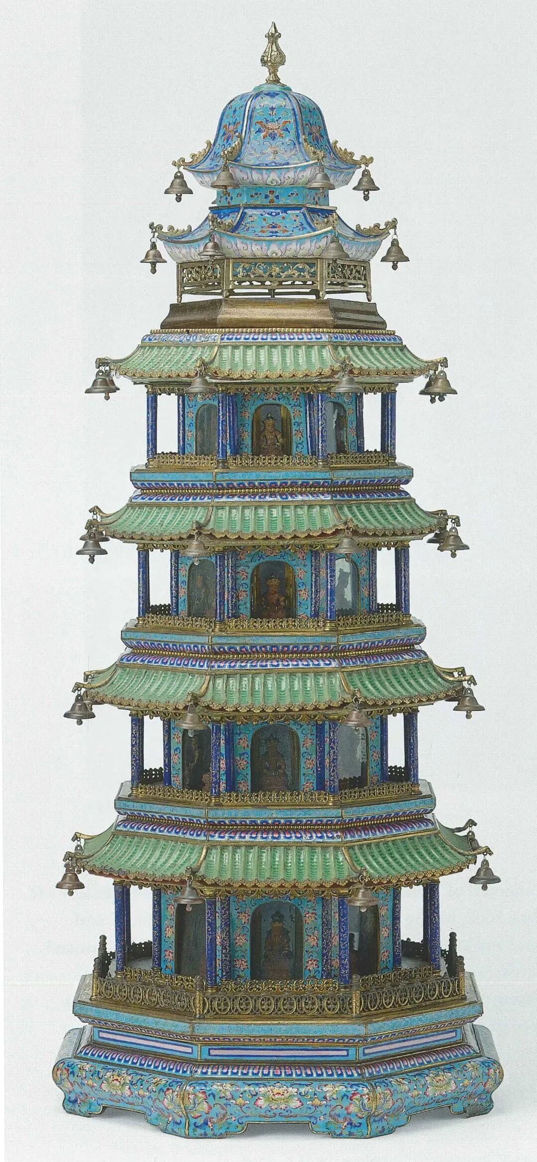 清朝铜胎画珐琅鎏金五层塔
