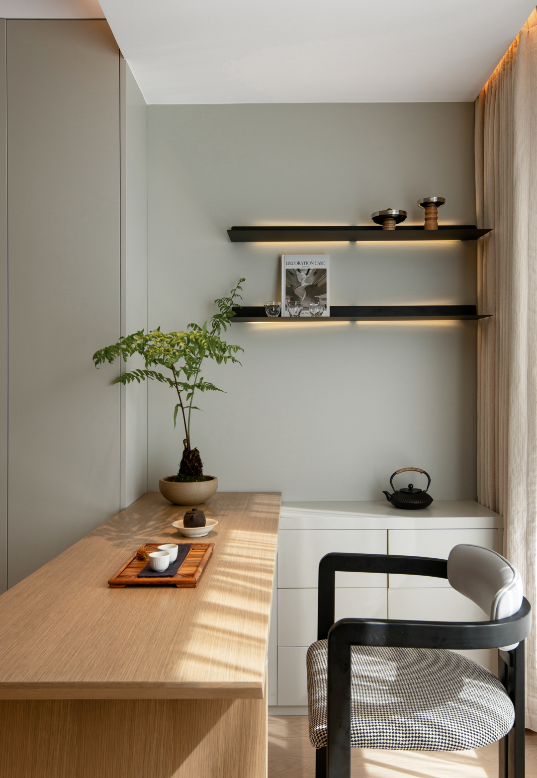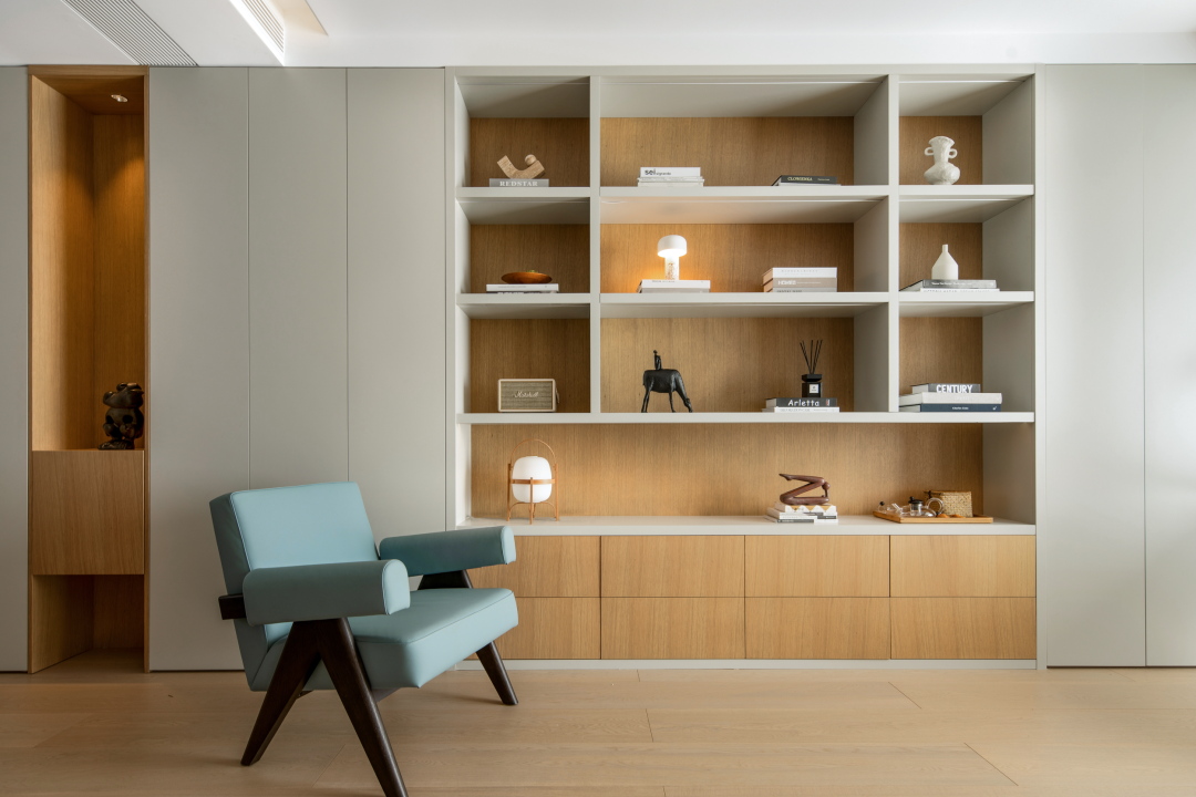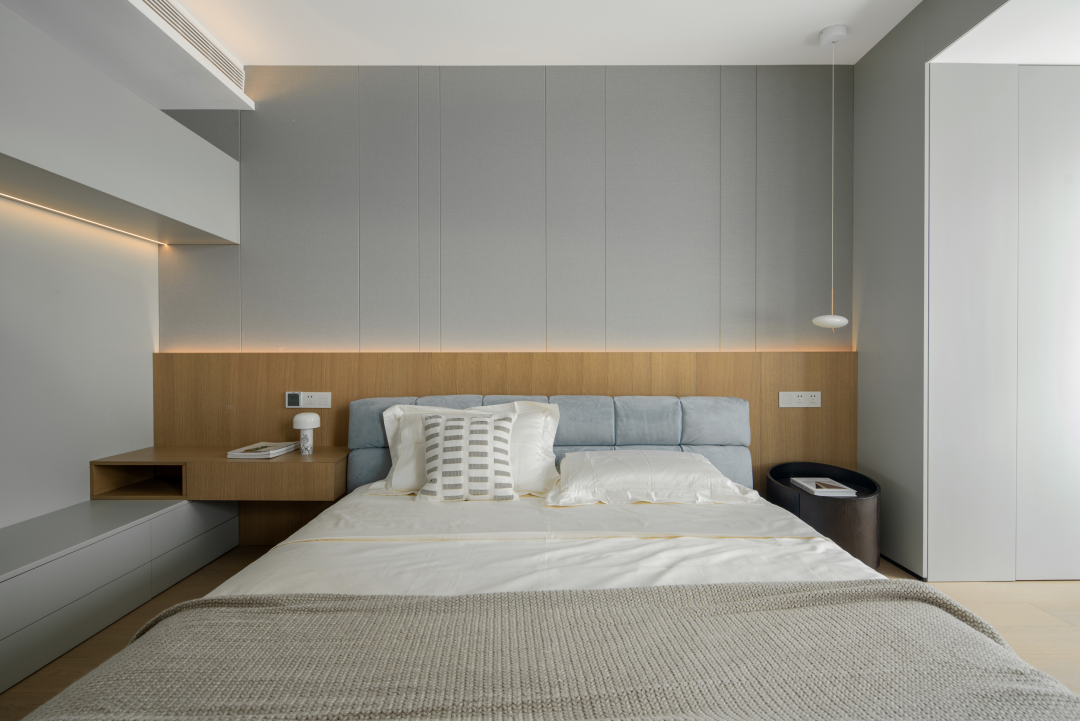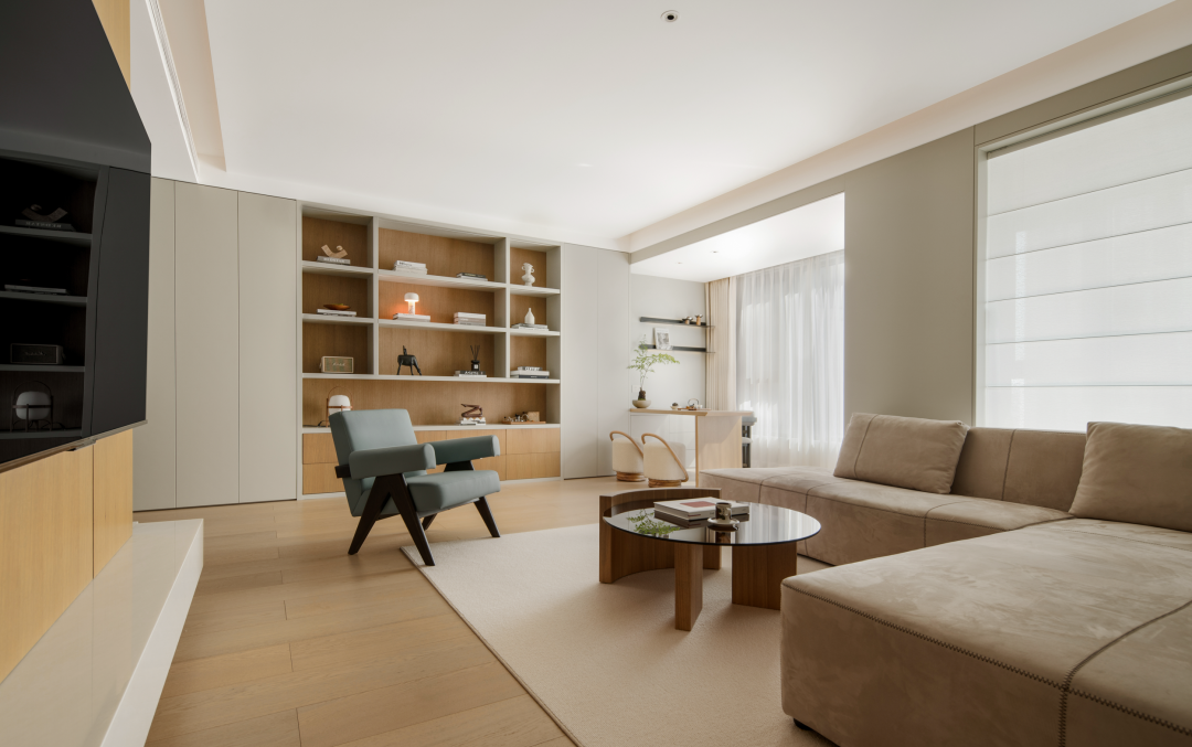 功能与美学共生,静谧的气质在设计师的选材搭配中呈现。从客厅至睡卧,搭配自然的原木饰面,无处不在让你感受生活、设计文化的美学内涵。