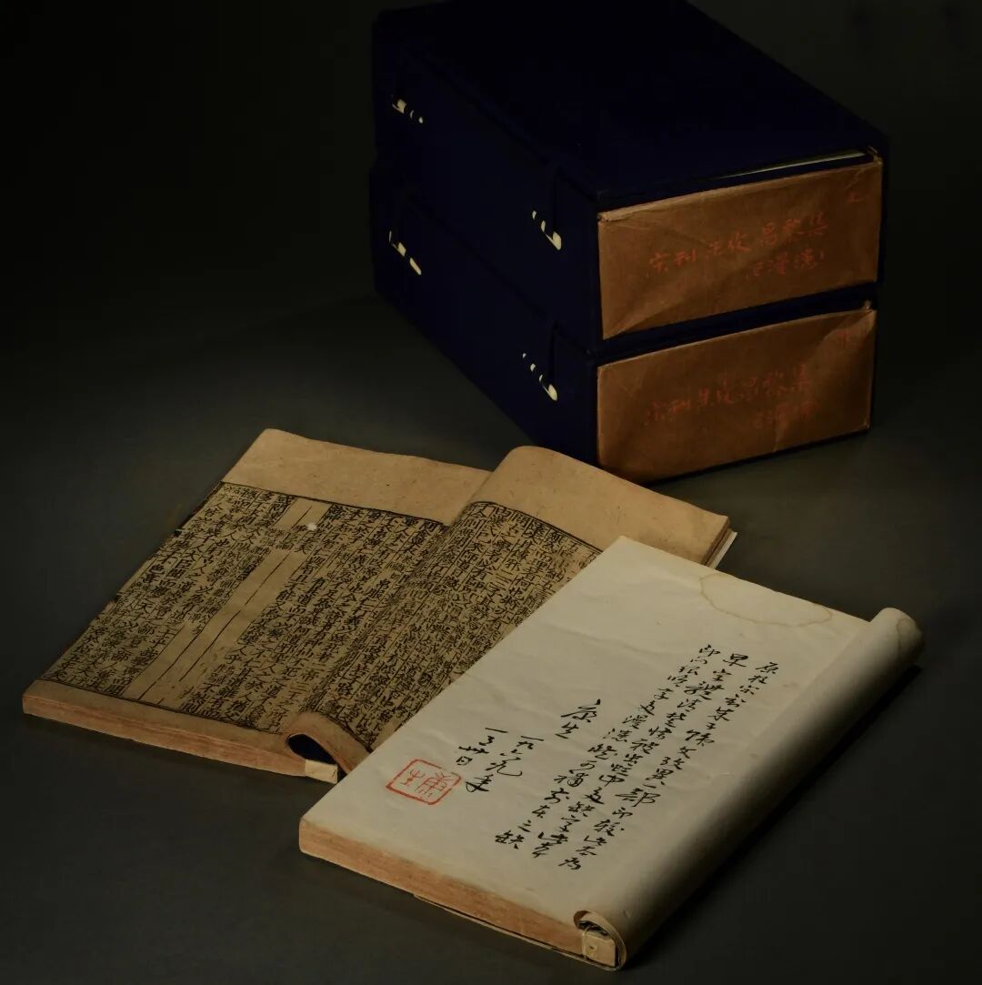 此为宋末元初刻本,二函十二册,黄麻纸,线装。半页十三行,行二十三字,小字双行同,黑口,四周双边。扉页康生题跋并钤名章。书内钤章琳琅。据考,此书经明末葛鼐、清钱桂森、邓拓、康生等递藏。康生朱笔题写书根包装纸。