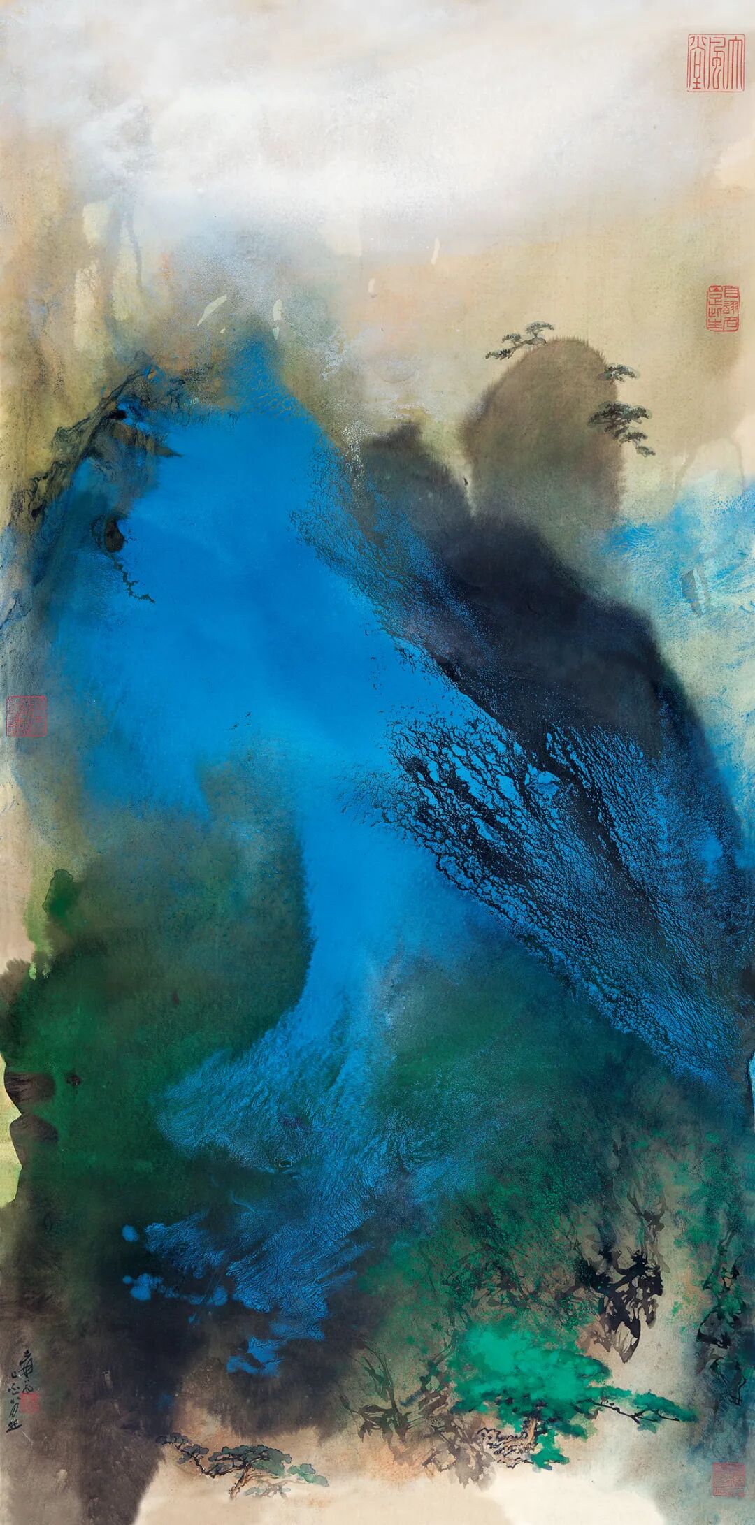 张大千 松峰晓霭图
