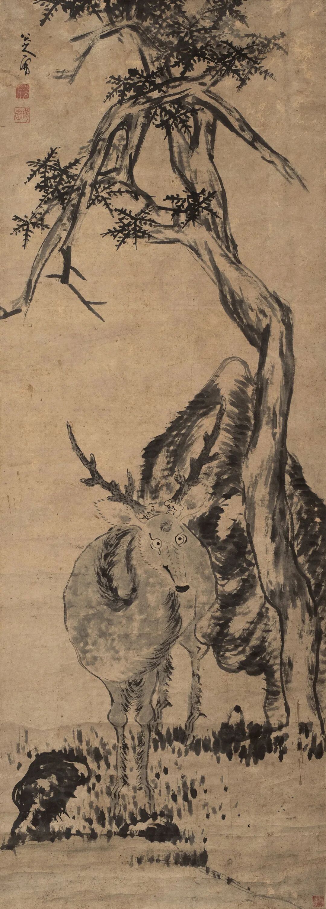八大山人 柏鹿图