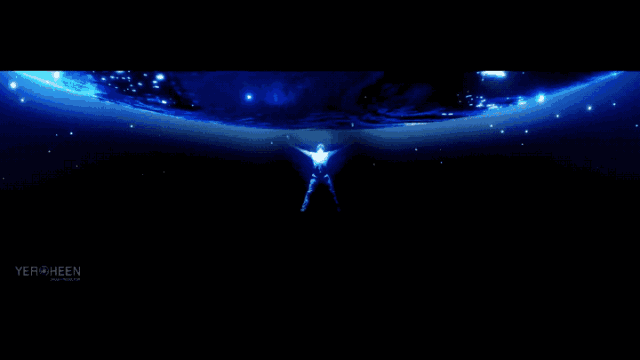 整个舞台在投影影像的包裹下,将真人舞蹈演员隐藏于浩瀚的星空之中。这时,舞台中央耀眼的光束不断汇集,勾勒出一扇大门,此时演员从投影背景中显现真身,将门推开,将观众带入美轮美奂的通信宇宙世界中。