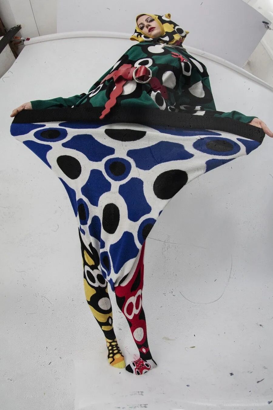 Charles Jeffrey还在镖毒蛙、蓝环章鱼、猫蛾毛虫、山胡桃毛蛾和大理石锥体蜗牛的身上汲取灵感,“自然界中的有毒斑纹非常明亮吸引人,作为一个与色彩打交道的人,这种奇怪的相互作用对我来说是一种本能。它既能避开人们,又能让人们走到一起。