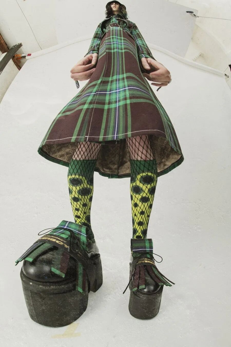 若是换个角度看,Charles Jeffrey也表达着一种颓废的美。在凌乱与悲情中,人们能体会到古怪与杂乱都是Charles Jeffrey衬托荒凉的手法,世界的不完美用服装赤裸裸的展现着。