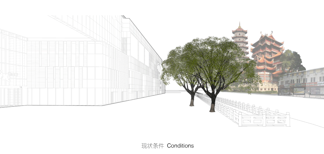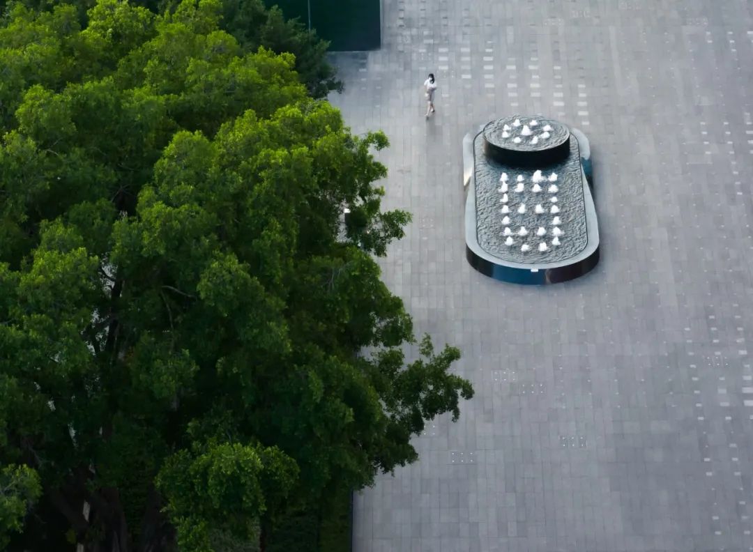 我们保留了现场两棵巨大的榕树,让人在行走的过程中能够被更多的树荫遮蔽。考虑到场地现有榕树与将来新植物的协调性,我们在“茶田”上方也相对应的种了很多具有阵列感的树,与两棵大型的老榕树形成对比,互相之间既有一种秩序感,又有一种历史记忆的高级感。