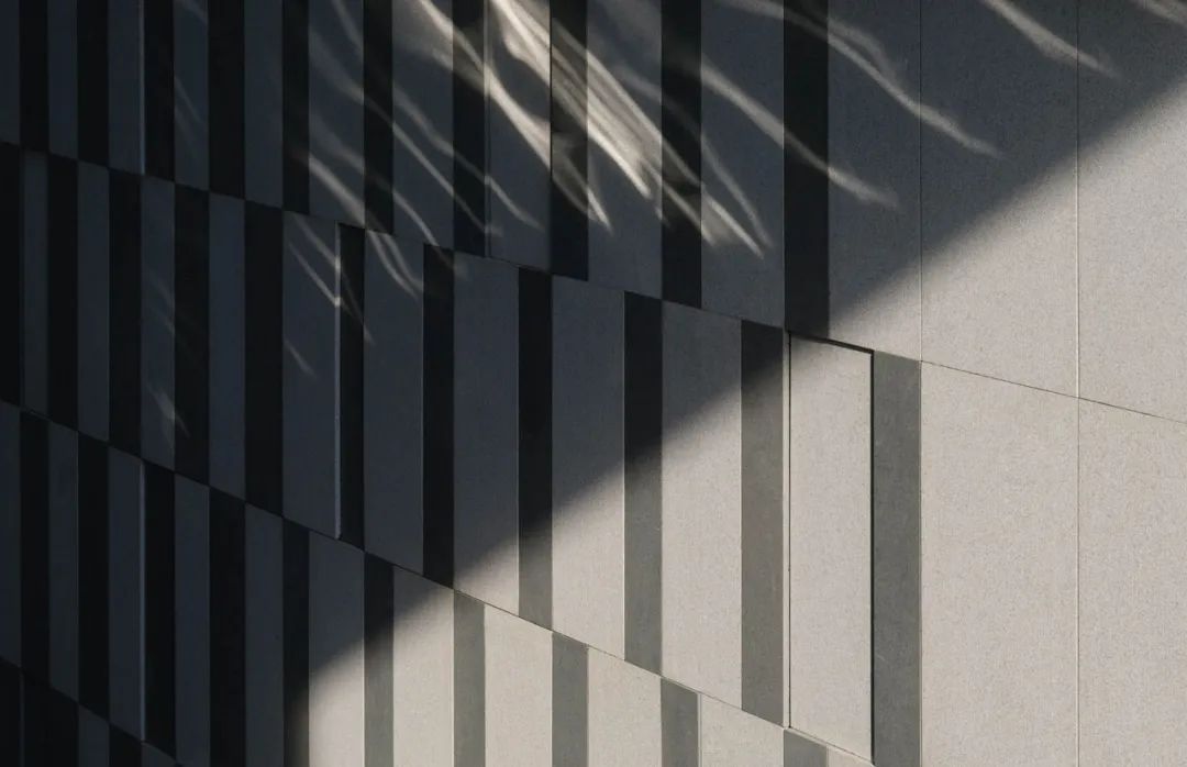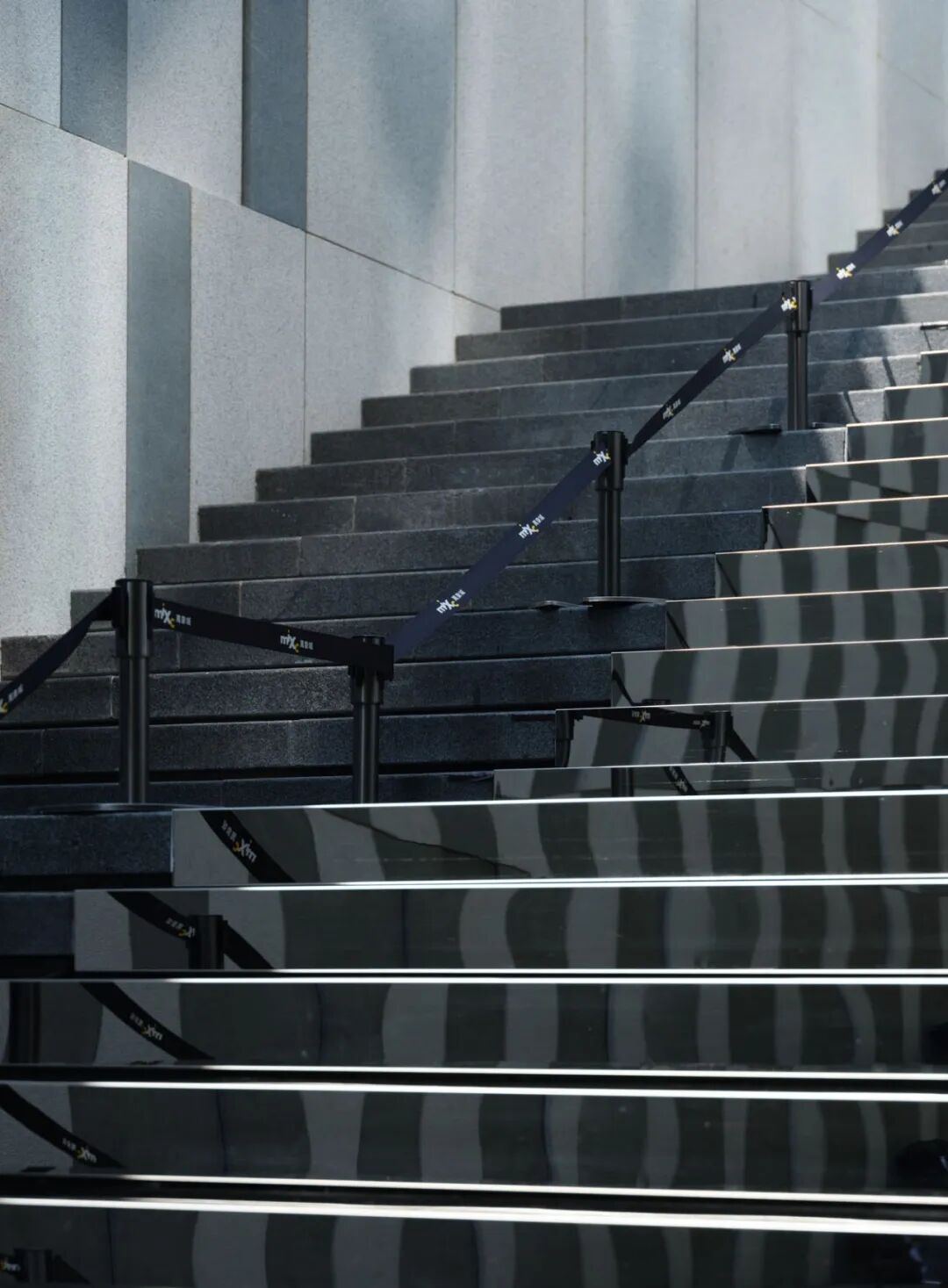下沉空间的整个立面黑白交织变化,形成了特殊的肌理节奏与设计纹案。