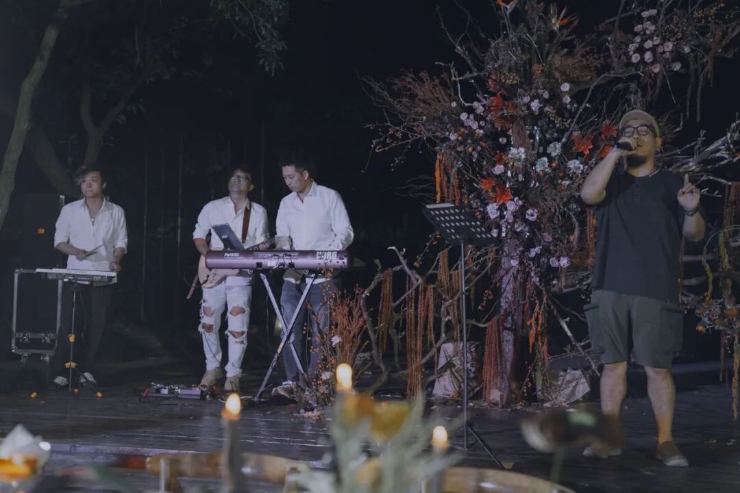 乐队也是他们挑了好久的,每个环节每个小事他们都花了特别多心思。比如一般婚礼乐队都是爵士,他们挑了民谣,还专门挑了自己的歌单。